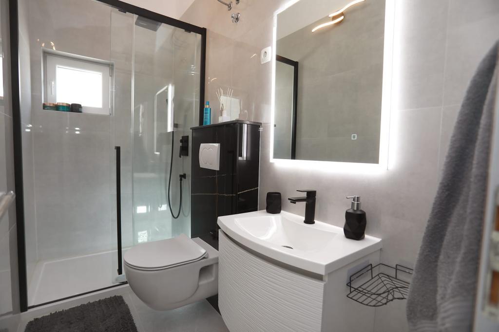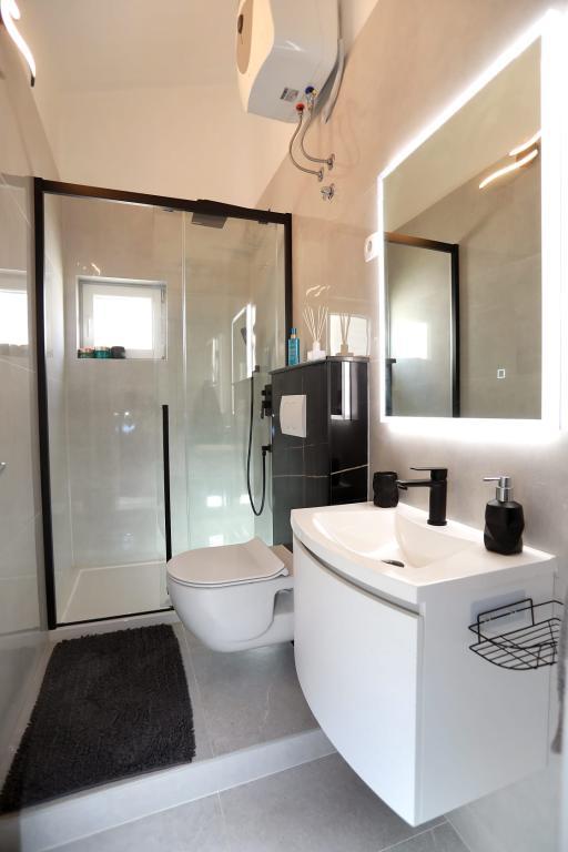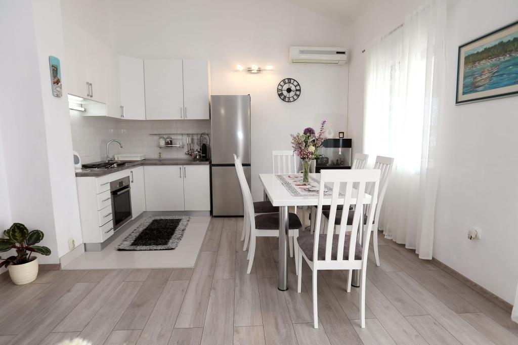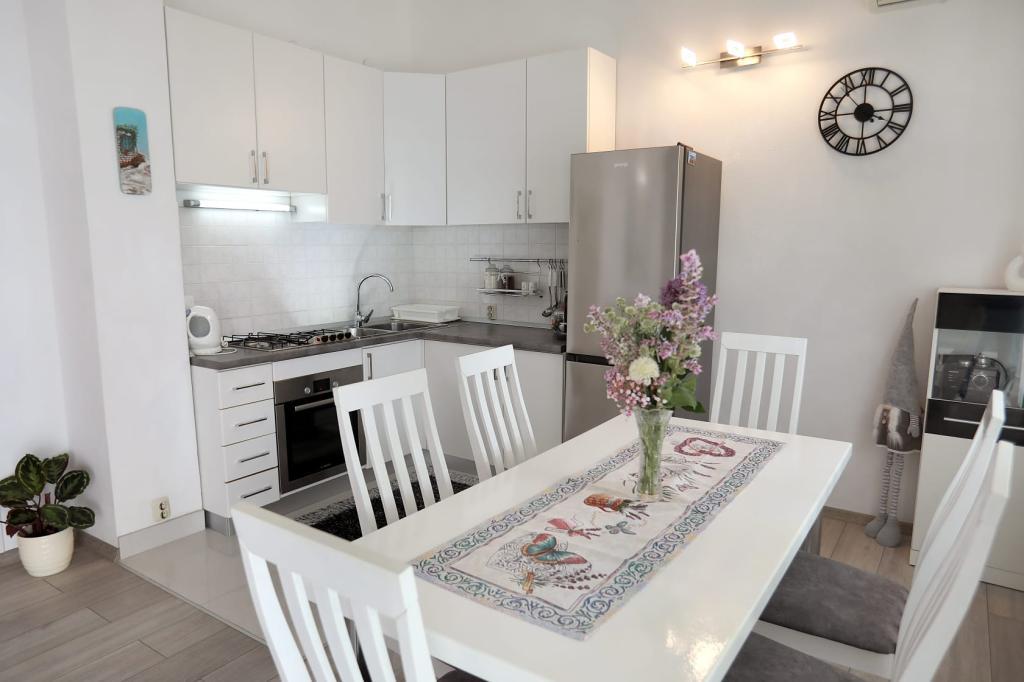 Az Apartment Katija Okrug Gornjiban található, mindössze 30 méterre a tengerparttól. Apartmanunk a béke, a kényelem és a dalmát szigetekre nyíló lenyűgöző kilátás tökéletes kombinációját kínálja. Ideális úti cél családoknak, pároknak és mindazoknak, akik természetközeli környezetben, távol a tömegtől, mégis minden szükséges szolgáltatás közelében szeretnének kikapcsolódni. Élvezze a reggeli kávéját vagy az esti naplementét a saját teraszán, ahonnan lélegzetelállító kilátás nyílik. Mindössze 5 perc sétára található egy jól karbantartott, gyermekek számára is alkalmas strand, sekély vízzel és természetes árnyékkal - ideális családi nyaraláshoz. Az apartman főbb jellemzői: tenger közelsége, gyönyörű kilátással rendelkező terasz, teljesen felszerelt konyha étkezővel és nappalival, két hálószoba franciaággyal, zuhanyzós fürdőszoba alapvető felszereltséggel, ingyenes Wi-Fi, légkondicionáló, TV, ingyenes parkolás. Akár aktív nyaralást tervez, akár egyszerűen csak élvezni szeretné a napsütést és a tengert, Gornji kerületben található apartmanunk mindent kínál, amire szüksége van egy felejthetetlen tartózkodáshoz.