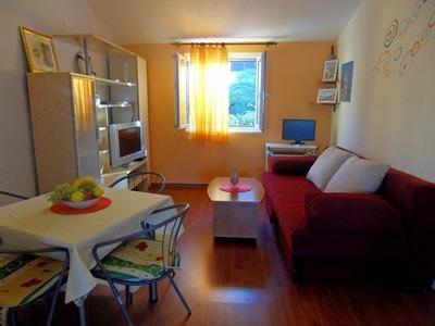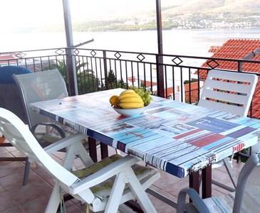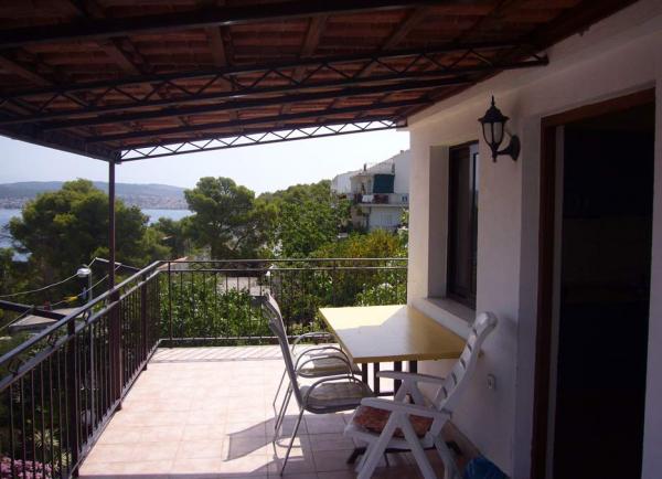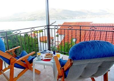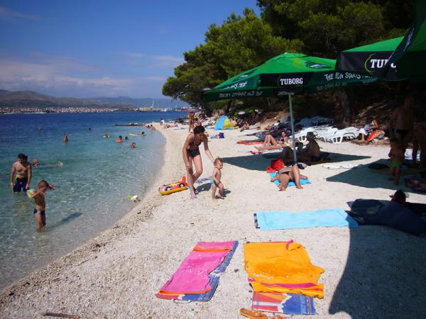 Teljesen felszerelt apartman Okrug Donji a sziget Ciovo, közel a város Trogir. Az apartman található, az első emeleten található, és gyönyörű kilátással a tengerre. A lakás ideális családoknak, egy hálószoba franciaággyal, egy kis szobában egy dupla ágy két fő részére, nappali kihúzható ággyal, konyha, fürdőszoba - zuhanyzóval és egy nagy félig fedett terasz nyílik a tengerre. A lakás alatt található a főút (nem kell átkelni az úton, hogy a tenger), a tengertől mindössze közel 80 méterre található a lakásban. Megjegyzés - a hozzáférést a strand alatti lakások elég meredek. Nagy strand csak 15 perc sétára található a lakásban.