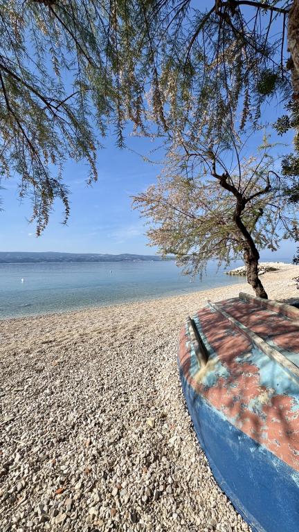 Ébredjen tengerre néző kilátással, egy tökéletes nyaralással Omis közelében. Menedék a tömeg elől, és élvezze a nyugalmat. Mindössze 100 méterre a strandtól és a tengertől. Modern, 2+2 fős kétszintes apartman, ideális egy család számára. Felső emelet gyönyörű kilátással a tengerre, alsó emelet nagy terasz nyugágyakkal, asztallal és grillezővel - a kis oázis. Minden elérhető közelségben van, étterem - 20 méterre, szupermarket - 50 méterre Omiš városától - 2 km-re a tengerparton. Csendes és nyugodt környezet, biztonságos, privát parkolóhely. Kalandos kirándulásokat, valamint privát hajókirándulásokat is kínálunk.