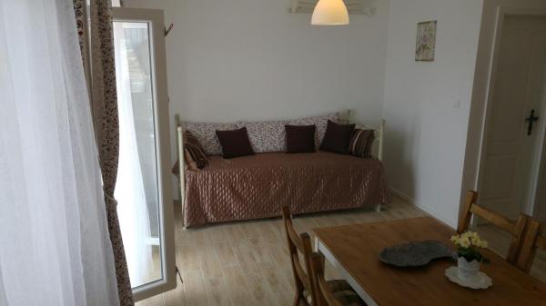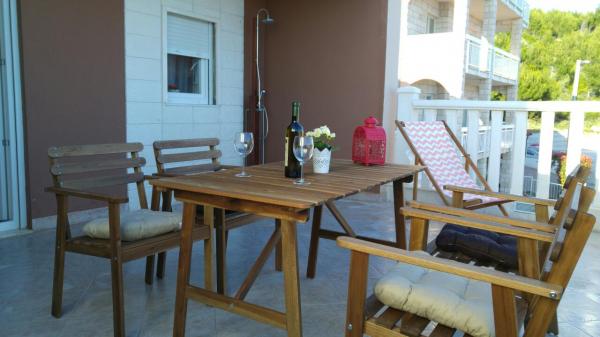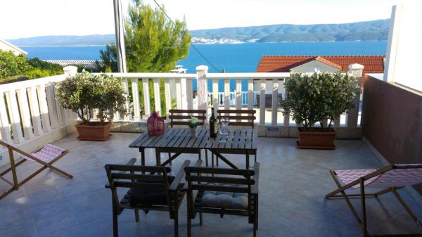 Az apartman található, egy csendes helyen. . A lakás nem új építésű, ízlésesen berendezett. áll cc45m2 a nappali és egy gyönyörű terasz cc35m2 kilátással a tengerre és a szigetekre. . távol a tengertől cc 900m. . szintén Omis cc 5 km