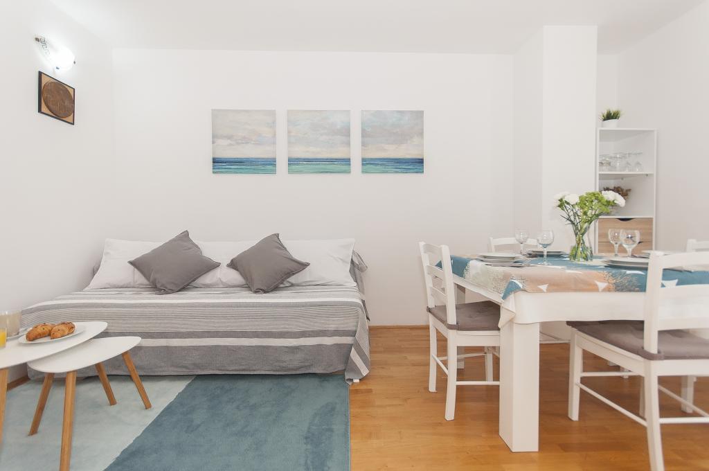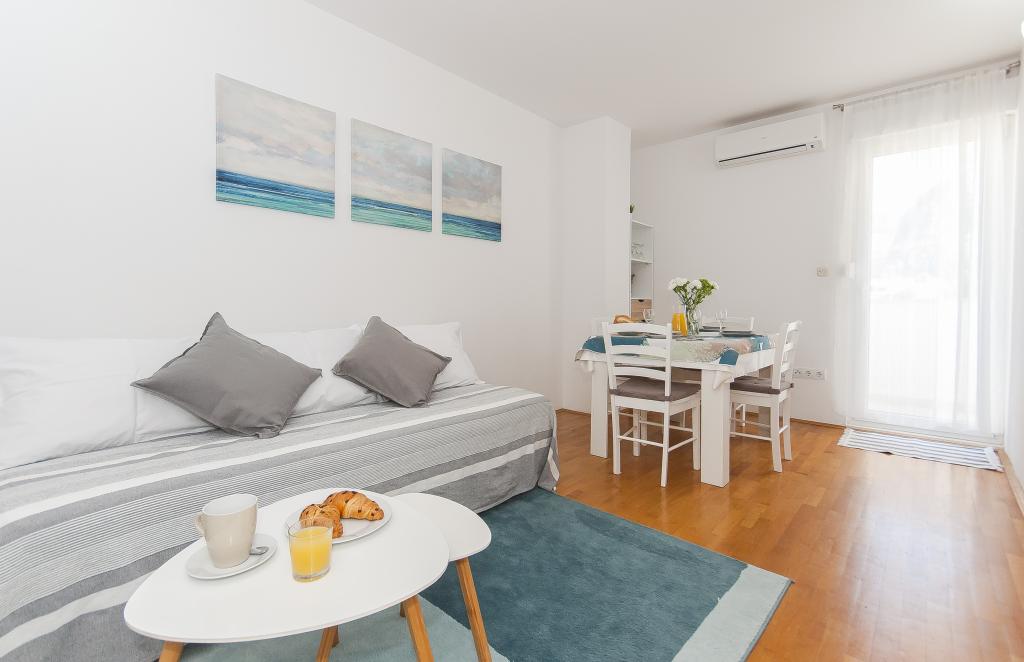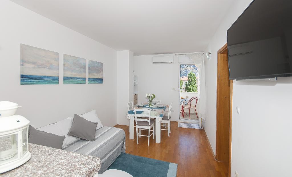 Az Apartman Luna*** Omis új részén található, mindössze 7 perc sétára az óváros központjától és a homokos strandtól. A 60 m2-en elterülő, nemrégiben felújított apartman 2 hálószobával, nappalival, konyhával, egy fürdőszobával és egy folyóra és tengerre néző erkéllyel rendelkezik. Belső tér- és szobaelrendezése miatt ideális gyermekes családok, párok, baráti társaságok számára. Az apartman összesen 6 fő elszállásolására alkalmas: két franciaággyal (180x200 cm és 140x200 cm) és egy kanapéval (160x200 cm) található. Az apartmanban mindent megtalál, ami a kényelmes tartózkodáshoz szükséges: légkondicionálás, ingyenes internet, műholdas TV, mosógép, felszerelt konyha. Az Apartman Vinko*** egy kis faluban, Kučićeban található, 13 km-re Omistól. Három nagy hálószoba, két konyha, két WC, három erkély és egy fedett terasz grillezővel, saját parkoló két autó számára.