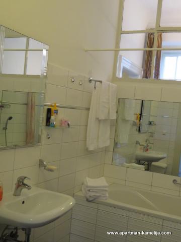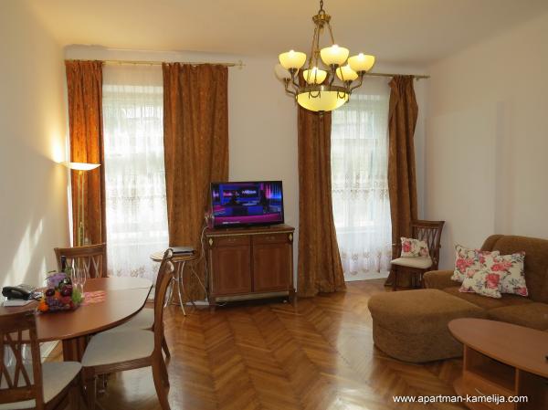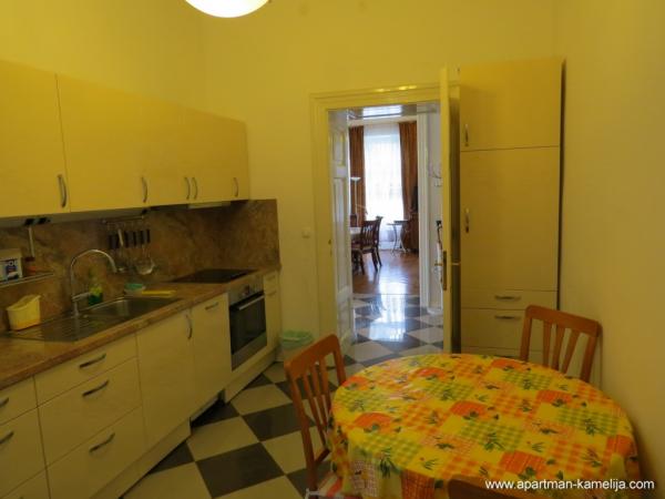 Kedves vendégeink. Kínálunk egy jól felszerelt apartman (100 m2) található, amely az első emeleten a Villa Emilia egy csendes utcájában, Opatija központjában, mindössze 100 méterre a tengertől. Nagy belmagasság. Ez egy szép kilátás, erkély napellenző, kerti bútorokkal. Úgy tervezték, hogy maradjon 2-6 felnőtt gyerekekkel. A lakás 100 m2-es, 2 szoba, nappali, TV (Smart TV) és műholdas TV-vel, 2 fürdőszoba (káddal és zuhanyzóval), ingyenes WI-FI és Internet. Fel van szerelve: mosógép, mosogatógép, vízforraló, tűzhely, sütő, nagy hűtőszekrény fagyasztóval, modern konyha, mikrohullámú sütő, hajszárító, vasalódeszka szett, légkondicionálás, padlófűtés, kiságyat, készlet, ágynemű, törölköző, konyhai edények és a főzés. Előtte a villa egy kertben. A lakás biztosított biztonsági kapu is van egy biztonságos. A parkolás az udvarban. Üdvözöljük! Csak vegye a személyes tárgyak és jöjjön el hozzánk nyaralni! Nálunk csak mi vagyunk jól érezzük magunkat.