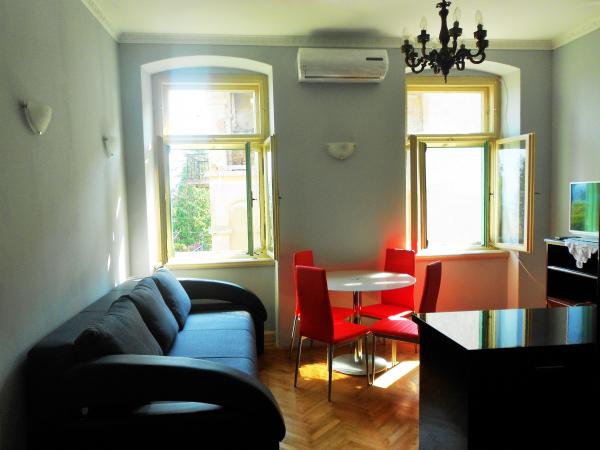 Gyönyörű 2 teljesen felszerelt apartman a régi Osztrák-Magyar Helios villa Opatiában, mindössze 100 méterre a strandtól és 500 méterre a városközponttól. Ingyenes parkolás az Ivo Kalina utca túloldalán. Parkolási lehetőség egy nyilvános garázsban, mely 100 méterre van az apartmantól, 300kn / hét felár ellenében. Apartman villa Helios1 tágas nappali, hálószoba, konyha és fürdőszoba WC-vel, kertre és tengerre néző. Apartman villa Helios2 a magas tetőtérben, nappali, hálószoba, konyha, fürdőszoba WC-vel, tetőterasz panorámás kilátással a tengerre. A közelben található minden lehetőség: posta, bankok, üzletek, bárok, éttermek, szépségszalonok, wellness, tornaterem, tenisz, gyermek és felnőtt strand (kék zászló), mozi (nyári színpad), kajak kölcsönzés, , taxi hajó, üvegcsónak, szervezett kirándulások hajóval és buszokkal.