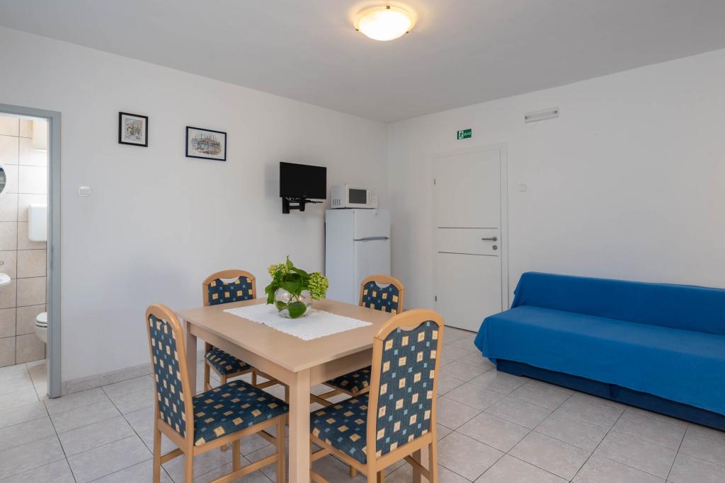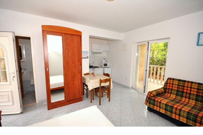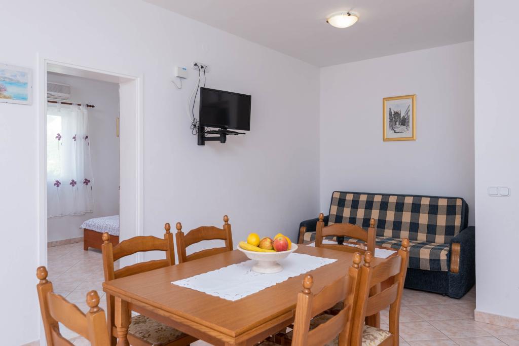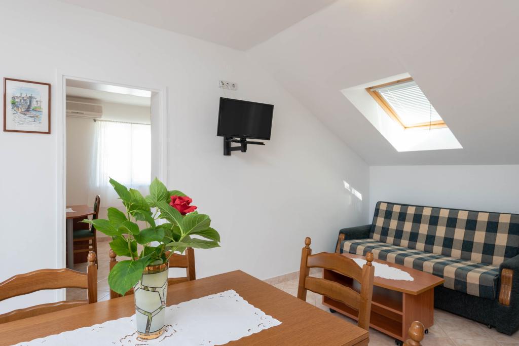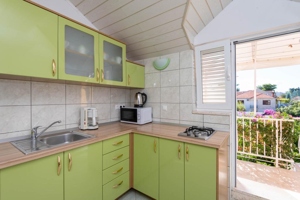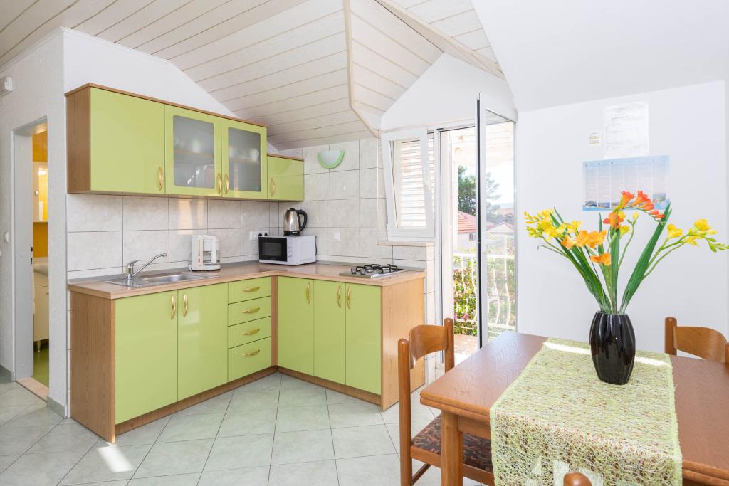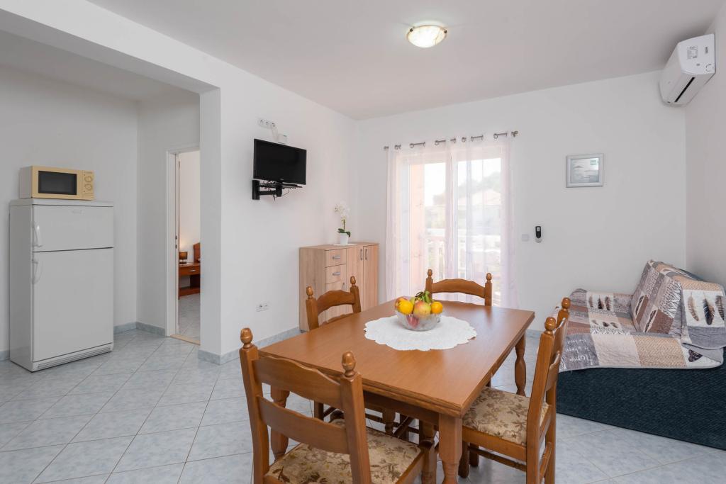 A "Villa Melita" közvetlenül a tengerparton található, egy csendes sétányon. Ez a hely különösen alkalmas mindazok számára, akik pihenésre vágynak. A házhoz gyönyörű, mediterrán növényzetű kert tartozik, ahol medence napozóágyakkal. Grillezési lehetőség is rendelkezésre áll. Saját parkolónk is a közelben található. Minden apartmanunkban légkondicionáló, ingyenes wifi, műholdas TV, teljesen felszerelt konyha, fürdőszoba és saját terasz található. A törölközők és az ágynemű is benne van az árban. A háztól gyalogosan is elérhető számos étterem, kávézó, üzlet és pékség, amelyek minden napi igényt kielégítenek. A legfontosabb, hogy a Trstenica fő városi strand mindössze 40 méterre található.