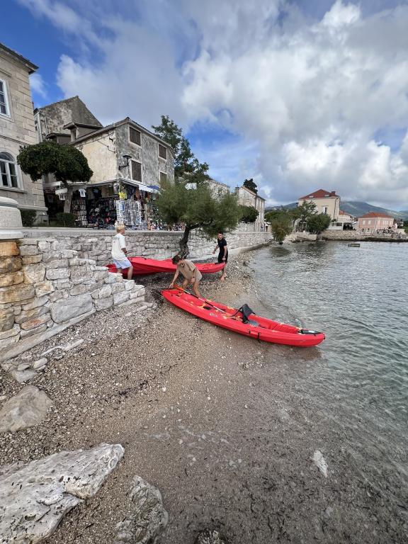 86 LÉPÉS a tengerpartra - kőlépcsőkön lefelé, olajfák és citromfák mellett, kilátással a kék tengerre - A strand szerelmesei élvezni fogják. KIRÁNDULÁSOK Korčula, Mljet és a környező szigetek könnyen megközelíthetők (az orebići kikötő mindössze 250 méterre található). Élvezze a mediterrán konyha és az olasz dolce vita ízeit (mindez 300 méteres körzetben) - INGYENES: Tengeri kajakok - SUP deszkák - Napernyők és strandszőnyegek. - ÜDVÖZÖLJÜK OREBIĆ KÖZPONTJÁBAN, és ne hagyja ki a tökéletes nyaralás lehetőségét. ÉS AS KÉPEK TÖBBET mondanak a szavaknál - NÉZZE MEG ŐKET, és ítélje meg saját szemével. - APARTMANOK Teljesen légkondicionáltak - Wi-Fi - SAT-TV - Konyha - Fürdőszoba zuhanyzóval - Saját parkoló - Erkélyek napellenzővel - Ágynemű és törölközők GRILLEZÉS Citromfákkal körülvett grillezőhelyünk és kerti teraszunk teljesen felszerelt, és remek hely, ahol grillezett halat vagy húst készíthet.