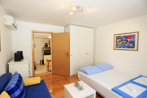 A város központjában Pag, a főtér közelében van egy teljesen felszerelt lakás. A tengertől való távolság 40 m, 30-40m éttermek, üzletek 20m. Tekintettel arra, hogy mi van a szívében, semmi nem lesz messze. Tartózkodása alatt a lakások akkor nem kell egy autó, ha nem akar menni kirándulni kívül városunkban. Az apartmanok megtalál mindent, amire szüksége van, teljesen felszerelt konyha, hűtőszekrény, tűzhely, vízforraló, mosógép, mikrohullámú sütő, ágynemű, ručinici, WC-papír, szappan és a test, hajszárító, légkondicionáló és internet. Mindez benne van az árban. Az ár tartalmazza az adót és a parkolóhely. Abban a pillanatban, ha kell valami mást, azért vagyunk itt, hogy segítsen. Reméljük marad velünk, hogy eleget tesz minden a szépség, a sziget!