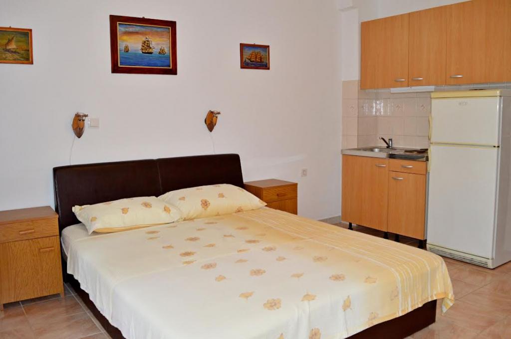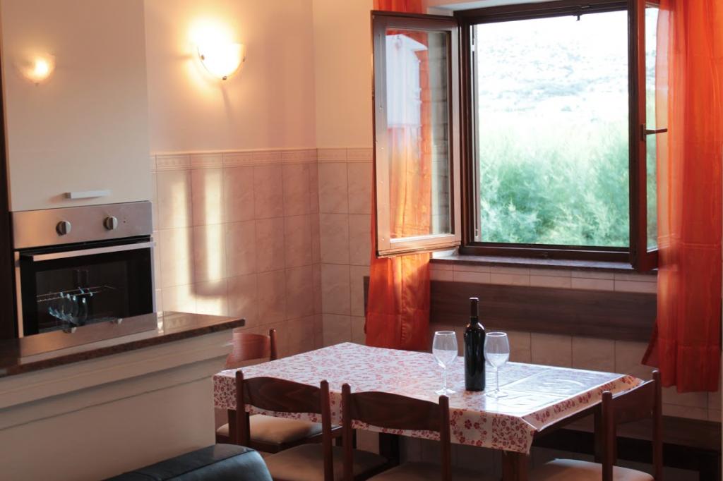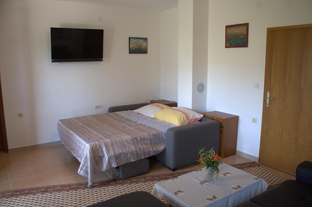 Három stúdióapartman: konyhával ellátott szobák, fürdőszoba és egy nagy 4 személyes apartman (2 + 2) Pag városában találhatók. Két stúdióapartman egy nagy családi ház földszintjén, egy stúdióapartman pedig az emeleten található. 10 perc sétára a főtértől és tizenöt percre a fő városi strandtól. Az apartmanok egy nagyon csendes és békés helyen találhatók, kertekkel, természettel és növényzettel körülvéve, amely alkalmas a nyugalmat vágyó vendégek számára. Az apartmanok 30 négyzetméter alapterületűek két fő számára, egy hálószobával, konyhával és zuhanyzós fürdőszobával rendelkeznek. A lakás bejárata előtt kis teraszok találhatók. Az apartmanok TV-vel, műholdas és internet-kapcsolattal felszereltek, az első emeleti lakás légkondicionált. Egy nagy családi ház földszintjén egy 60 négyzetméteres apartman található, egy hálószobával, nagy konyhával, nagy nappalival, kétszemélyes ággyal, négy fő részére (2 + 2). A lakás előtt egy kis terasz található.