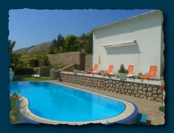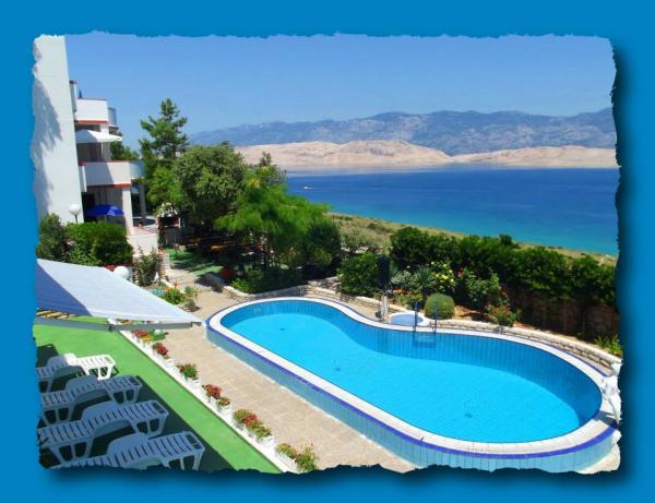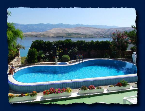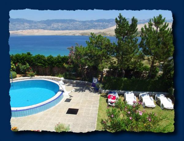 Lakossági adót nem az ár tartalmazza.Strandok: Az első strand 200 m-re található. A strand homokos-kavicsos a források ivóvíz. A házunk sok strandok, de ezek mind hasonlóak, ideális gyermekek számára (Pag 20 km strand) ... medence minden szükséges felszereléssel (napernyők, napozóágyak, asztalok és székek a kertben, hinta), két barbecue, parkoló. Leírás: Minden apartman fel van szerelve műholdas TV-vel, Wi-Fi, légkondicionáló, ágynemű, edények, napernyők és táblázatok a teraszon, hűtőszekrény és fagyasztó a konyhában, mikrohullámú sütő, törölköző. .