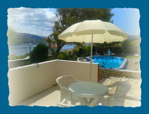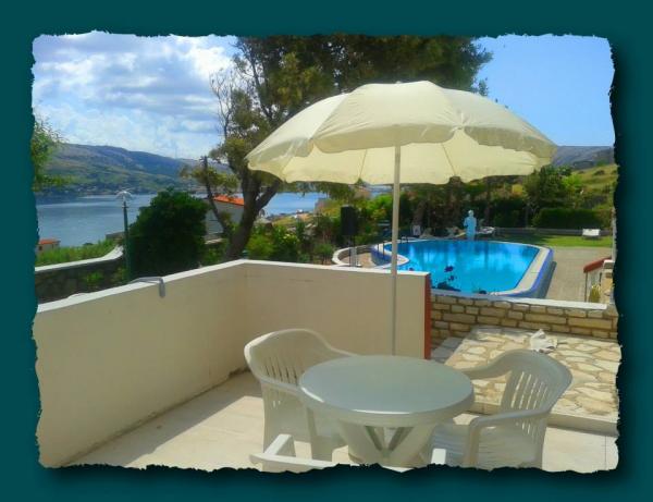 A házban található 3 km-re a városközponttól, egy csendes területen, mintegy 200 m-re a strandtól. Ez egy gyönyörű kilátás nyílik az öbölre és a hegyekre. A természet körül a házunk nagyon szép, így járni, és élvezze a szépség. Ez különösen szép tavasszal és ősszel, ha azt szeretnénk, hogy lazítson és kikapcsolódjon a mindennapi életben. Minden apartman tengerre néző kilátással. A kert nagy, sok virág és rengeteg helyet a szórakozás és kikapcsolódás, medence a kertben zuhanyozó, asztalok és székek, napernyők, egy nagy parkoló elég hely mindenki számára, hinta gyerekeknek ...