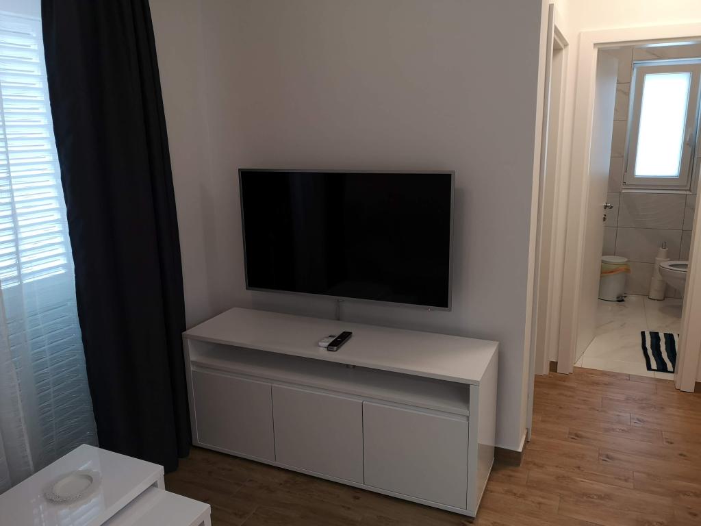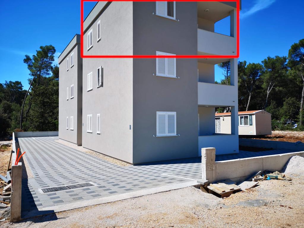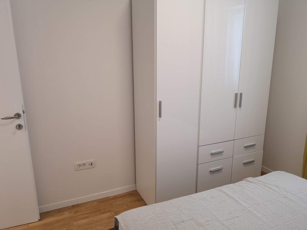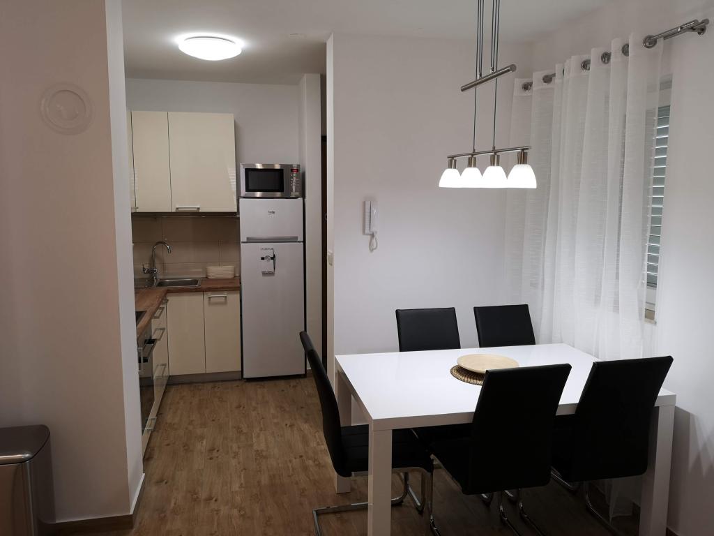 Két hálószobás apartman*** 2 + 2 fő részére, rendezett, modern és teljesen felszerelt, új épület 2. emeletén. Kiváló csendes elhelyezkedés Pakostane nyugati részén. Parkoló, klíma és WIFI biztosított. Háziállat csak kérésre és megegyezés szerint.