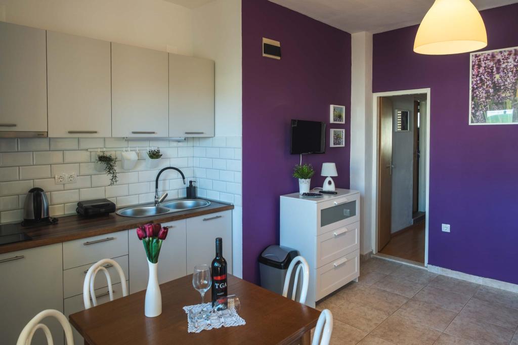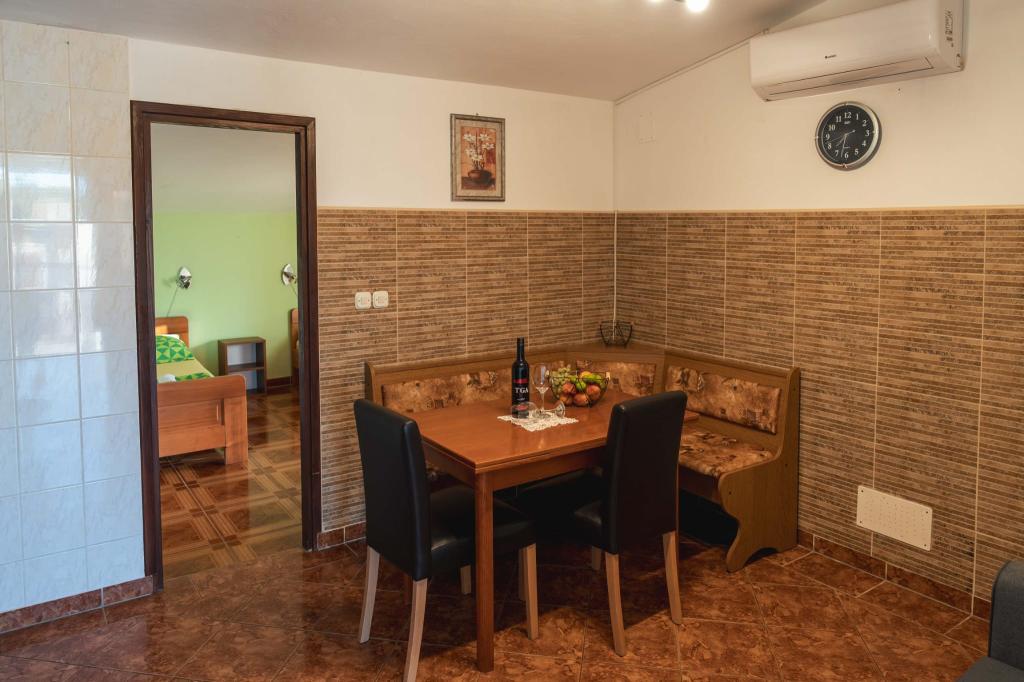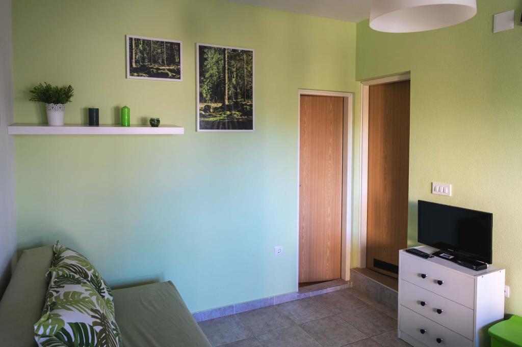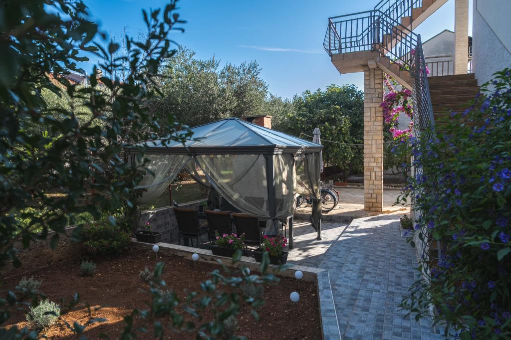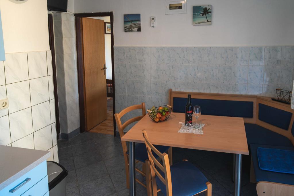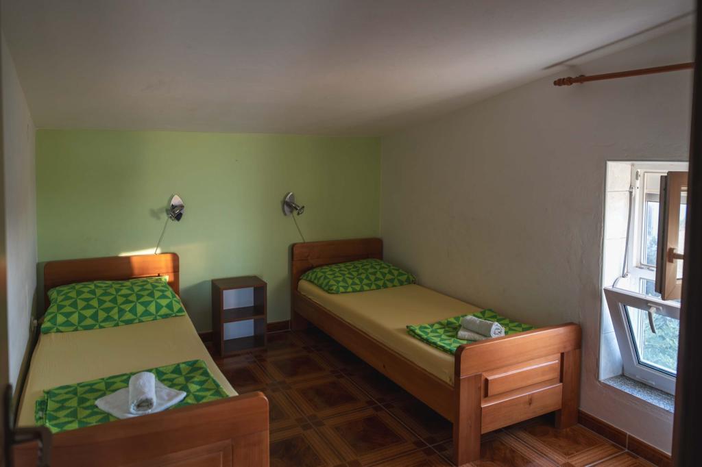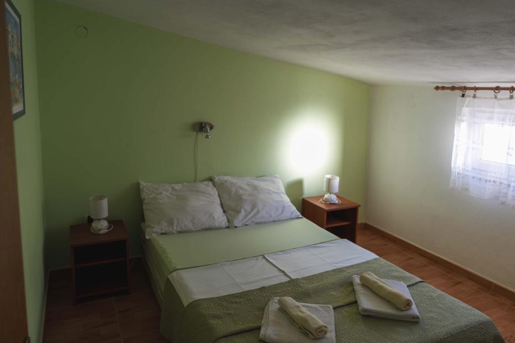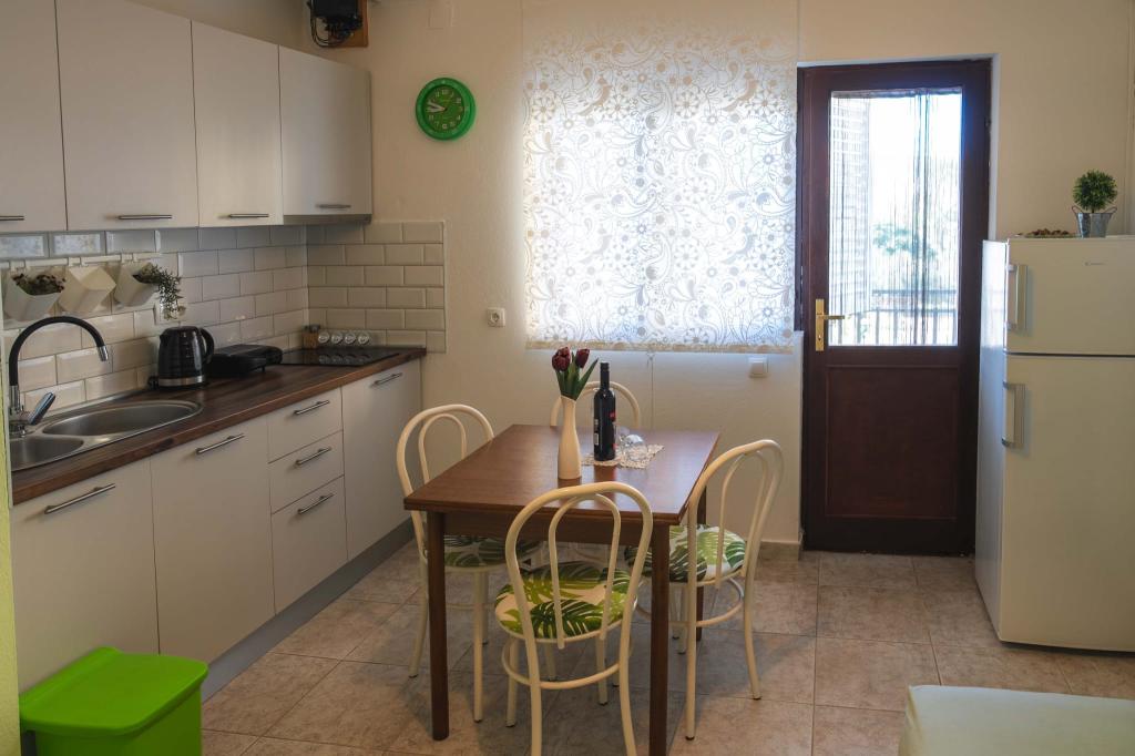 Négy APP (2 2) egy csendes részén Pakostane. APP egy hálószoba, ahol egy dupla és tripla szekrényben. A nappaliban van egy ágy (200x140), asztal négy székkel, és az egyik sarokban a konyha. A konyha áll sudopra, kemencék kuhanhe sütővel és hűtőszekrénnyel. Apartman tulajdonában légkondicionáló és TV. Előtte APP teraszán egy asztal és négy szék a APP. Az APP az első emeleten egy családi ház. Két hálószobás apartman két hálószoba, konyha, étkező és fürdőszoba zuhanyzóval. Az apartmanok egy nagy terasz, kilátással a tengerre, légkondicionálás. TV. A kertben grill gyermek hinták és parkoló a bekerített területen.