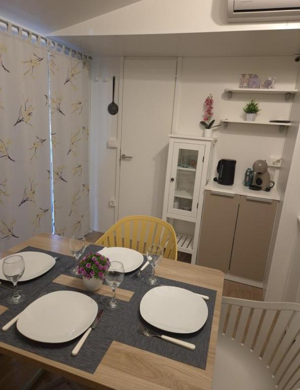 Kényelmes szállás: A Glamour Pakoštane mobilház két hálószobával, két fürdőszobával és tágas nappalival várja vendégeit Pakoštanéban. A szálláshelyen teljesen felszerelt konyha, légkondicionáló és ingyenes wifi is található. Szabadidős létesítmények: A vendégek élvezhetik a teraszt, a bárt és a gyermekmedencét. További szolgáltatások közé tartozik az étkező, a kerti bútorok és az ingyenes privát parkolás a helyszínen. Kiváló elhelyezkedés: A kemping 27 km-re található Zadar repülőterétől, néhány lépésre a Punta strandtól. A közelben található a Kornati kikötő és a Biogradi Örökségmúzeum, mindkettő 8 km-re. A környéken vitorlázási lehetőségek is vannak.