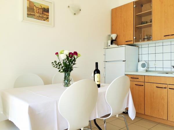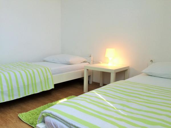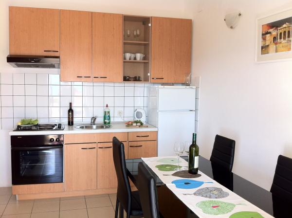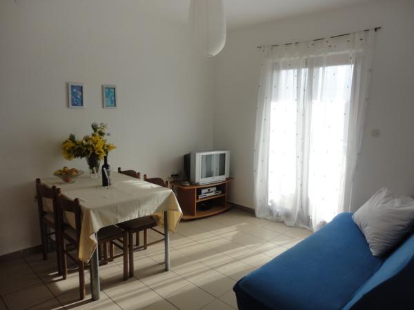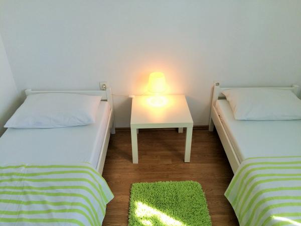 Kényelmes, teljesen berendezett apartman található az első emeleten egy három emeletes ház csendes környéken Petricane, távol a tengertől 100 m apartman két hálószoba, egy zuhanyzós fürdőszoba, konyha, nappali és erkély. A ház közelében vannak üzletek, pékségek, éttermek, bárok, játszótér.