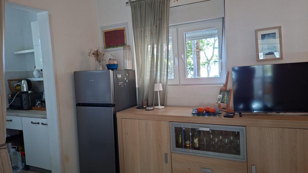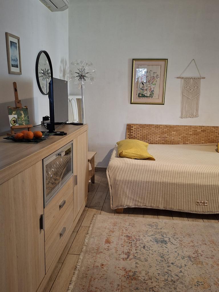 A Log Inn apartman egy kétlakásos ház első emeletén található, egy csendes sikátorban, ahol családok pihenhetnek. A ház árnyékos kertje olajfákkal, fügefákkal és fenyőfákkal tarkított, az udvarban pedig parkolóhely található. A városközpont üzletekkel, pékségekkel, cukrászdákkal, kávézókkal és éttermekkel 10 perces sétára található, az első kavicsos strand pedig mindössze 5-10 perces sétára található. A Log Inn kellemes szálláshely bármilyen időjárás esetén, tágas, külön szobával és nappalival, játékokkal és képeskönyvekkel. Jól felszerelt (edények, vízforraló, kávéfőző, max-tv, wifi, légkondicionáló), a nappaliban pedig a tavaszi estéken a vastag kályha tüze mellett pihenhetünk. A kerti bútorokkal ellátott terasz kellemes, a vendégek szívesen reggeliznek rajta, napoznak vagy élvezik az estét. A stúdió kisebb és kisebb konyhasarokkal rendelkezik, de a kertnek köszönhetően még a nyári melegben is kellemes. Babáknak felszerelés, ha jönnek: utazóágy, babaágy, játékok, szőnyeg stb. Mindkét apartmanban van hűtés és fűtés. Szezonon kívül kedvezményekkel és havi rendszerességgel bérelhetők.