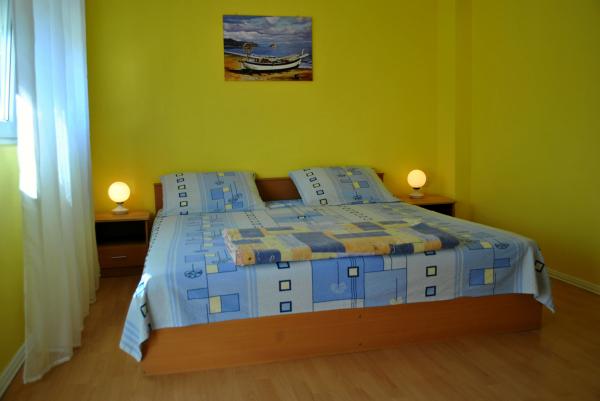 Kínálunk egy teljesen berendezett lakás található, egy csendes részén a Pirovac ki tömegeket és utak ideális családoknak és azoknak, akik szeretnének egy nyugodt nyaralás. A központ található, mindössze 400 méterre vagy 5 perc sétára, a strand kb 500m. A ház egy parkoló autóban, és egy nagy udvar alkalmas a gyermekek számára.