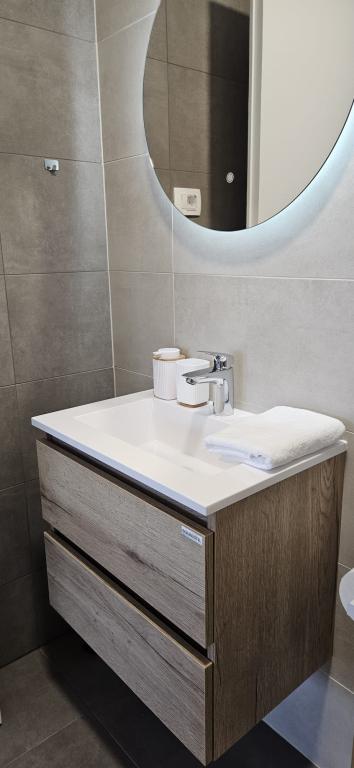 Tiszta, modern apartman, nagy terasz közvetlenül a tengerre néz. Tényleg csak egy rövid sétára a tenger, kb 2-3 perc, a város 10 percen belül max. Két család voltunk, így ideális volt 2 egymás melletti apartman a 2. emeleten. Ha kellett, a tulajdonosok rendelkezésre álltak, és minden azonnal megoldódott. Csak ajánlani tudom, kellemesen eltöltött nyaralás