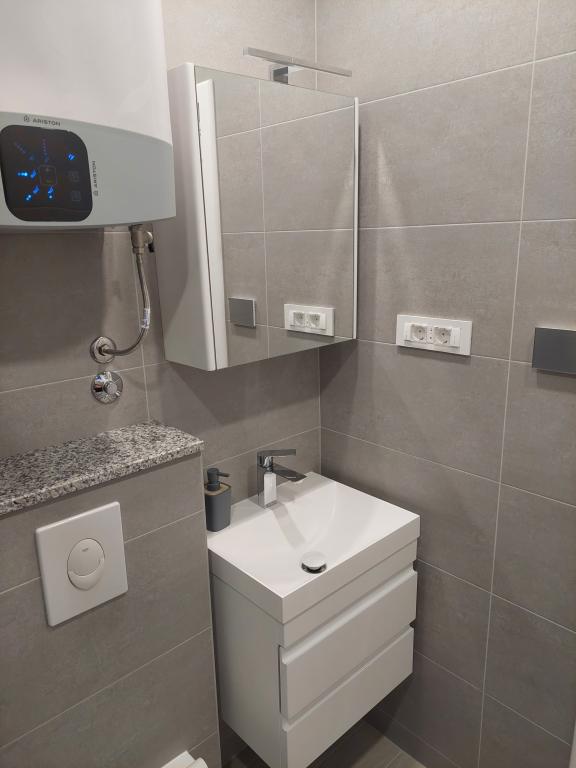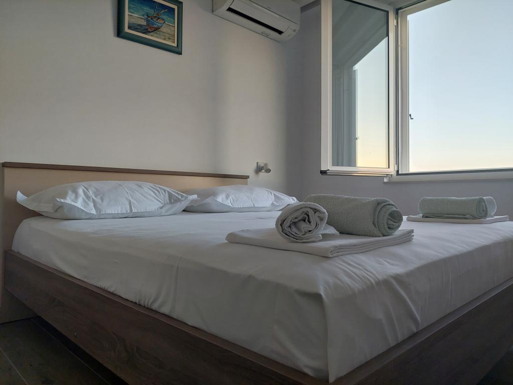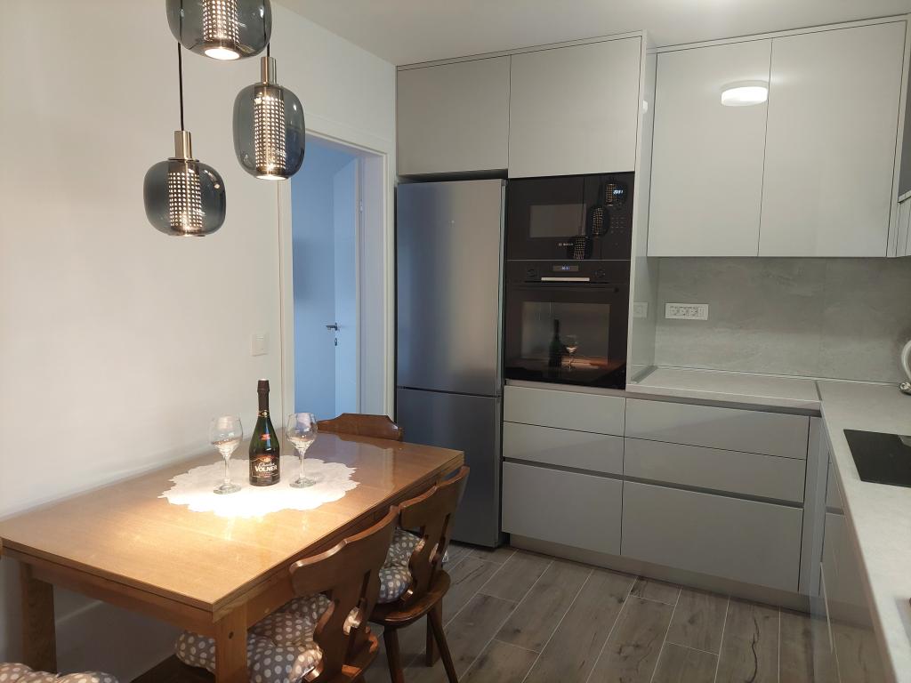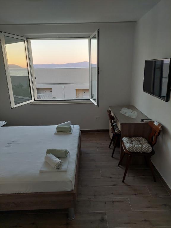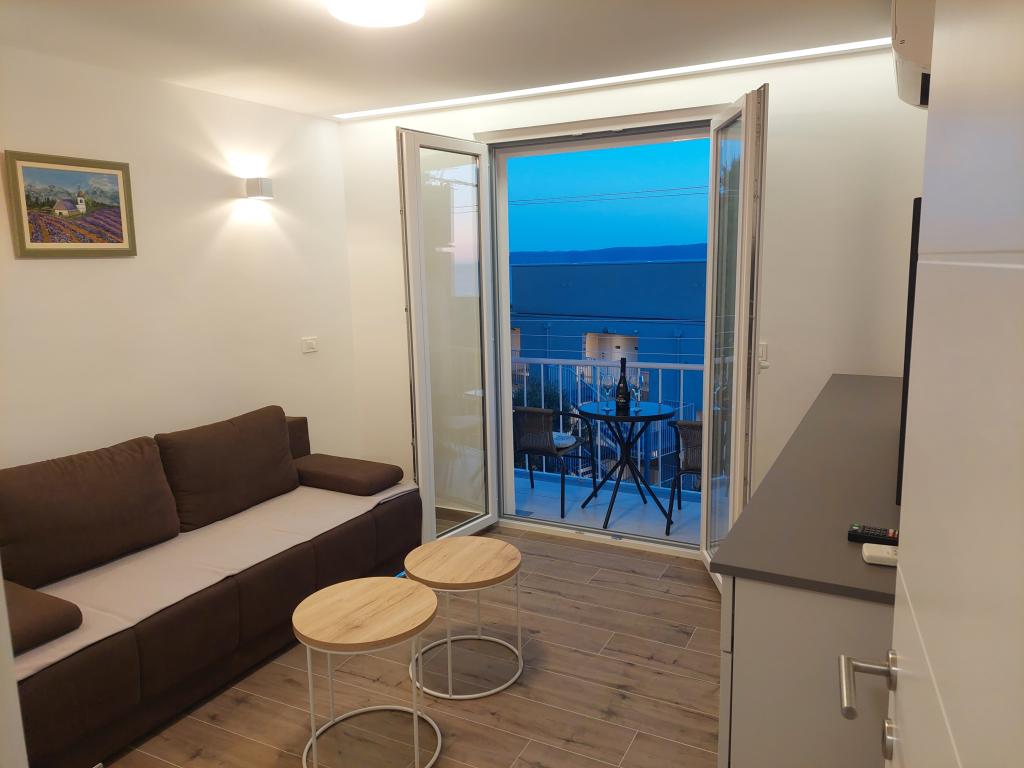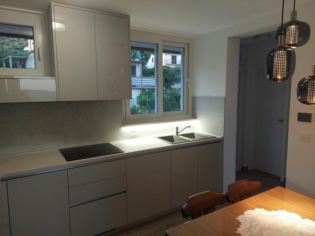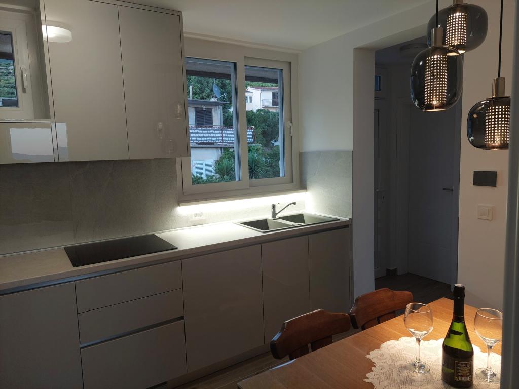 A lakás teljesen felújított, jól felszerelt konyhával és fürdőszobával. A legközelebbi strand kb. 2-3 perc sétára található az apartmantól, a városközpont pedig éttermekkel és kávézókkal kb. 10 perc sétára található. Az erkélyről részleges kilátás nyílik a tengerre.