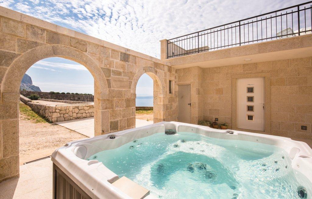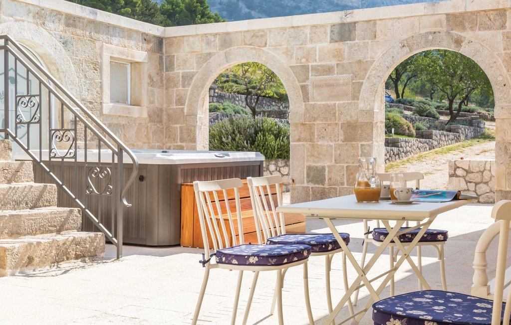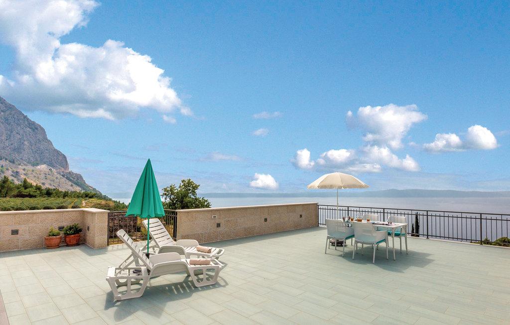 Dalmát kőház az ingatlanon, levendula körül, nagy terasszal, kilátással az Adriai-tengerre és a szigetekre. 10 perc autóútra a tengertől és 5 perc autóútra a Biokovo természetvédelmi park bejáratához.