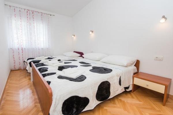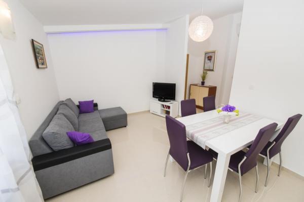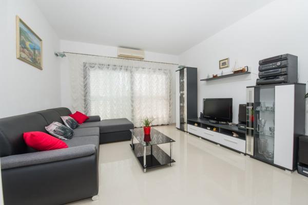 Teljesen felszerelt, modern apartman egy csendes részén Podstrana, a tenger mellett található; Az apartman található, 30 méterre a strandtól. Szupermarket és pékség csupán 2 perc sétára. Orvos és gyógyszertár 20 méterre. A lakás 2 erkéllyel, 2 hálószoba és 2 pótágy négy fő részére. Vannak két konyha és két bejárata van, így alkalmas két család részére.