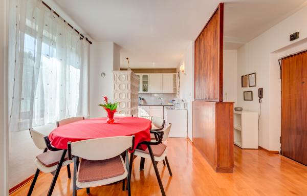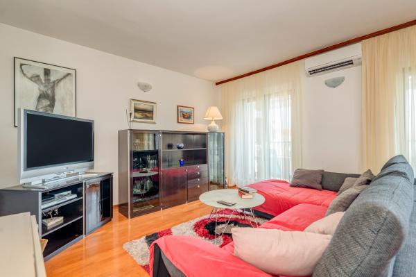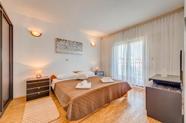 Ez a gyönyörű és kényelmes apartman Podstrana csendes részén található, mindössze 400 méterre a strandtól és Splittől 12 km-re. A környéken nagyszámú étterem és üzlet és buszmegálló található, közvetlen összeköttetésben Split városával. Ez a kétemeletes apartman hat embernek, három hálószobával (mindegyik franciaággyal felszerelt), egy nappali TV-vel, teljesen felszerelt konyha étkezővel és két fürdőszoba zuhanyzóval. A szoba légkondicionálóval és ingyenes Wi-Fi-vel, valamint saját parkolóval várja vendégeit.