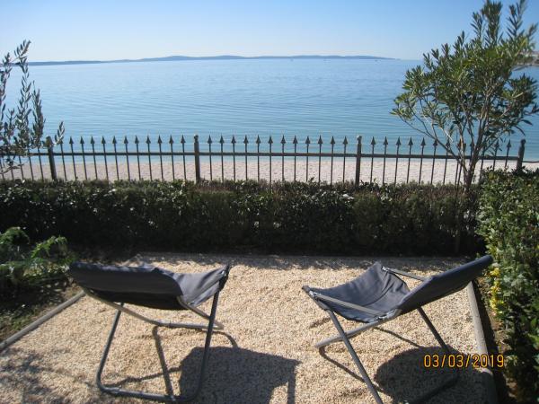 Apartmanunk az első sorban található a tengerhez, Strozanjban, egy kis faluban, Podstrana turisztikai városában. Az apartmanban pótágy elhelyezésére nincs lehetőség, de ha úgy tetszik, egy másik gyermek 5 éves korig aludhat egy nagy ágyon. A buszmegálló 5 perc. Sétáljon a lakásból, és gépkocsijához saját parkoló tartozik. Az apartman egy családi ház földszintjén található, tengerre néző kilátással, de néhány lépésre a tengerig sétál, a kavicsos strand pedig kertünkön keresztül vezet. A kertben napozással pihenhet a reggeli kávé vagy egy esti naplemente a tengerre néző kilátással. Ön rendelkezésére áll egy napernyő és napozóágy, ahol napozhat és pihenhet a kertünkben, vagy vigye őket a tengerhez közelebbi strandra. Élvezze a csónak kikötőjét az újonnan épült strandra, vagy a híres Lions hotel komplexumára a tengerpart másik oldalán. Látogasson el Split városába és Diocletianus 1700 éves palotájába (mindössze 8 km-re az apartmanoktól), és élvezze a város nyárát!