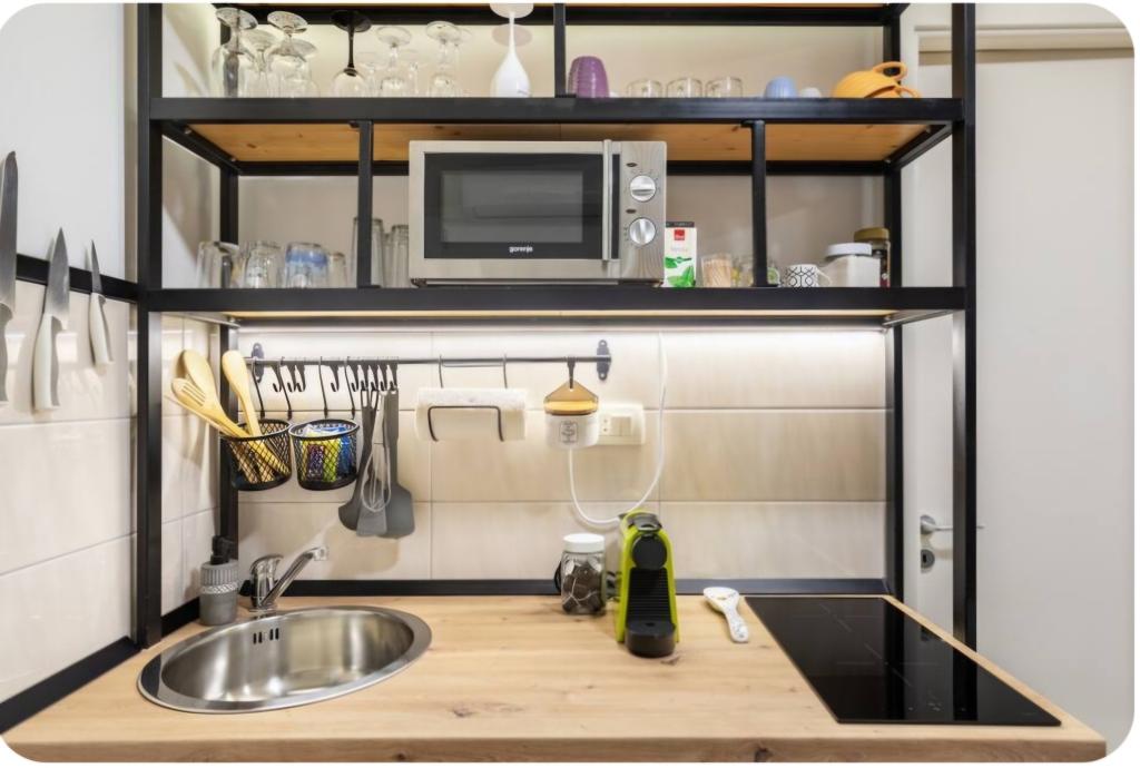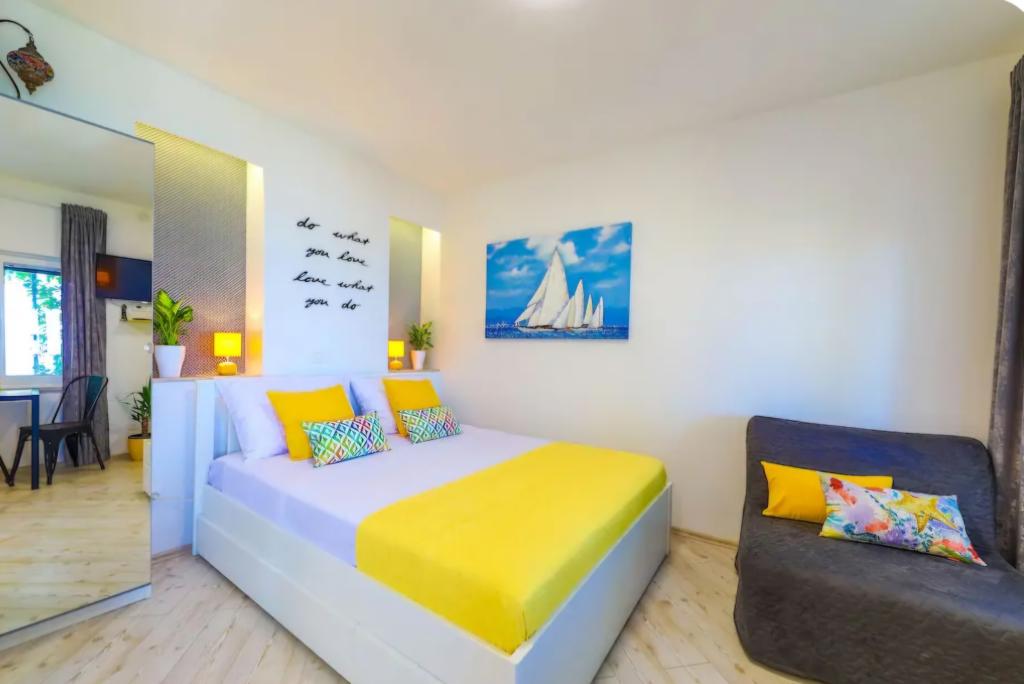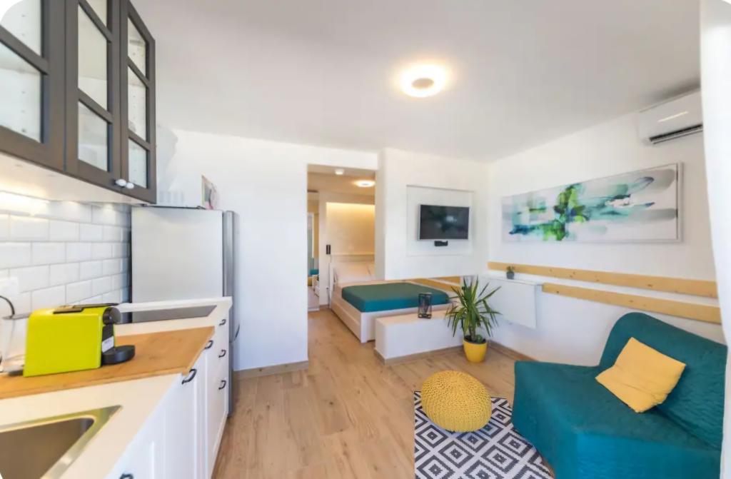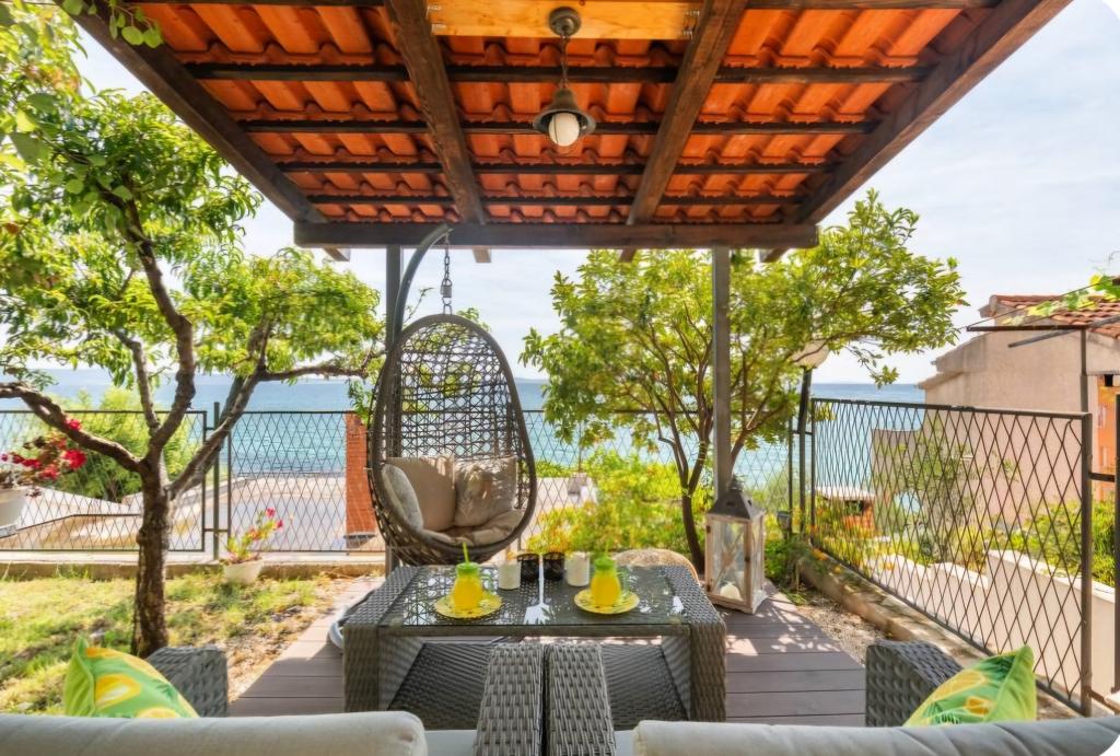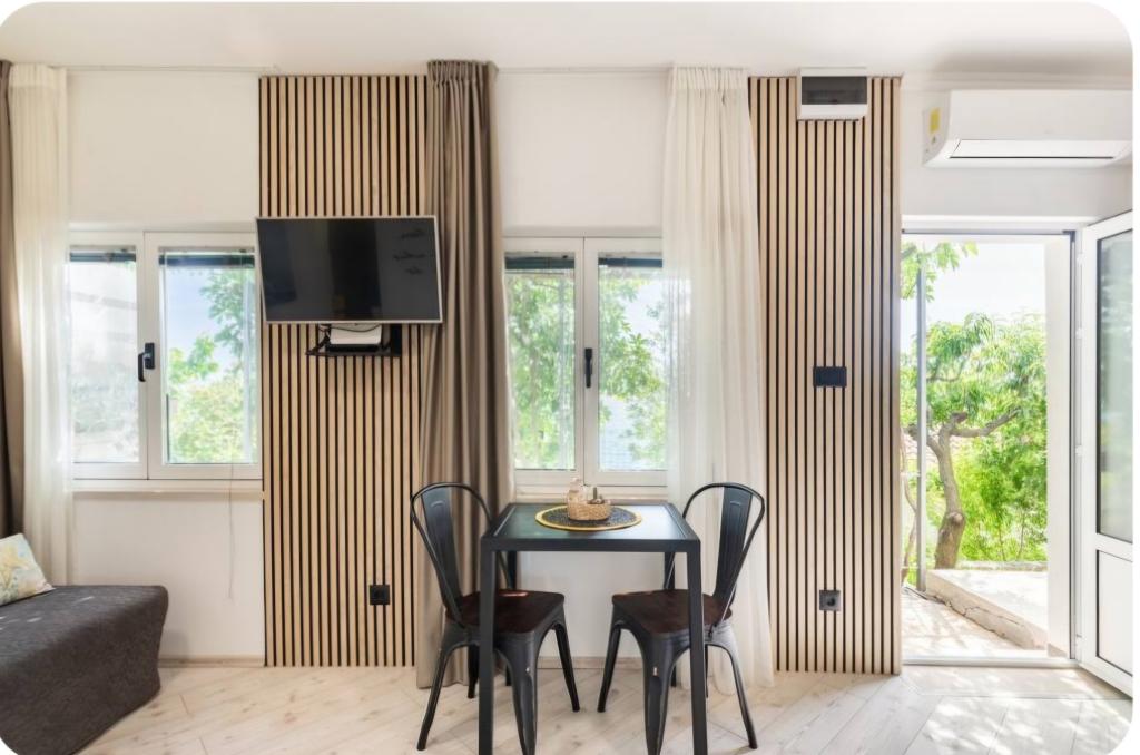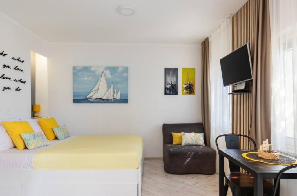 Nagyon hangulatos stúdióapartman, 30 méterre a tengertől. A lakáshoz saját parkoló is tartozik. A pihentető kertben található társalgó kiemeli a lakást. A nyugágyak és napernyők is benne vannak az árban.
