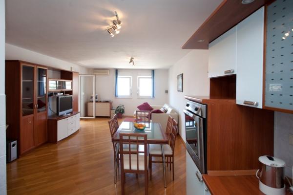 Modern és kényelmes apartman 4 fő részére Podstrana közel az első kategóriába Le Meridien Lav Hotel, és az újonnan megnyílt szálloda Split.Mogućnost a szálláshelyen strandok ellenszolgáltatás nélkül (strandok kijelölték a kék zászlók). A szálloda közelében más strandok, éttermek, jachtkikötő és egyéb létesítmények. Távolság Középen osztott 10 perc alatt elérhető autóval. Az egyetlen golfpálya a környéken csupán 700 méterre található a lakásban.