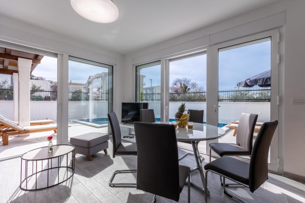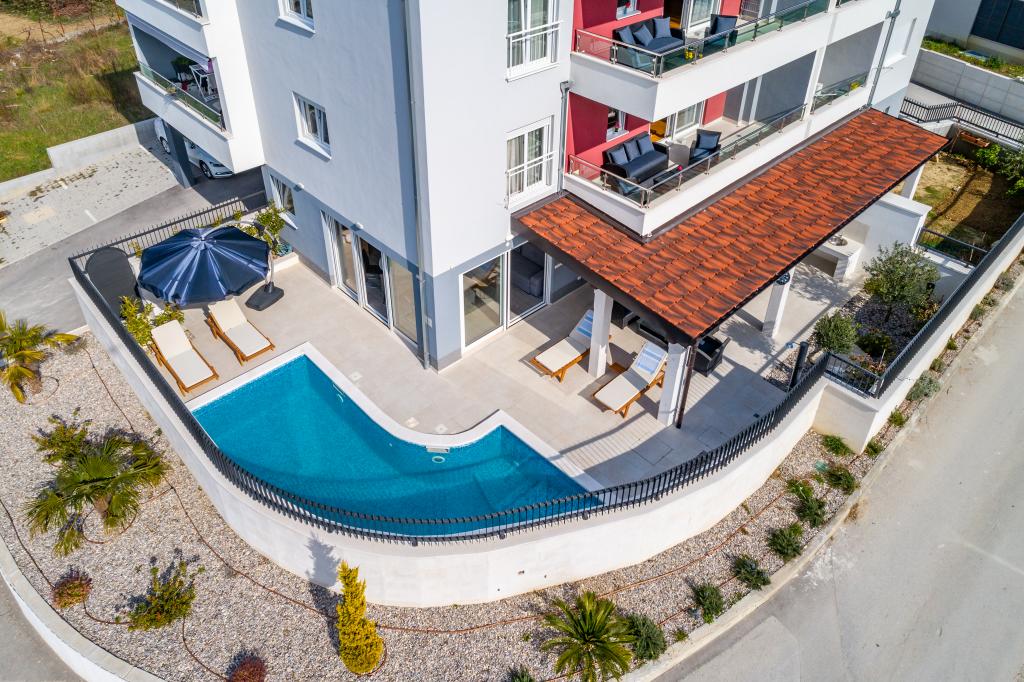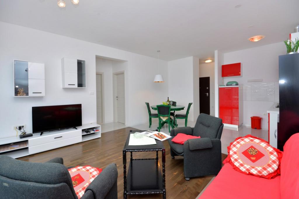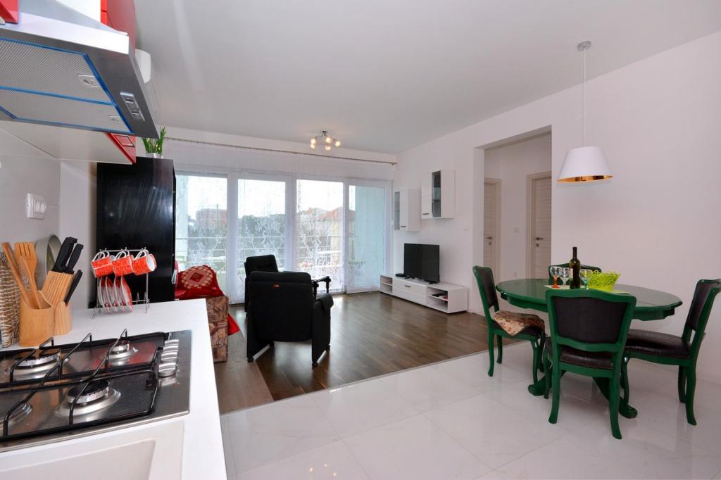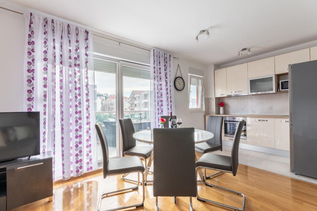 Teljesen modern, fényűzően berendezett apartman Podstrana csendes részén, gyönyörű apartman található új épületben, 2 hálószobával, nappalival, konyhával, terasszal, tv-wi-fi-vel, mosógéppel, légkondicionálóval, közel a strandhoz, mindössze 70 mt, saját parkoló. A közelben van egy buszmegálló, egy piac, szupermarketek, bárok, éttermek, gyorsétterem és hasonlók. Podstrana Split városa közelében található, mindössze 10 km-re.