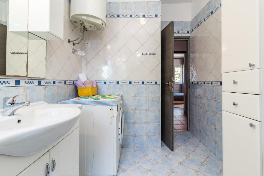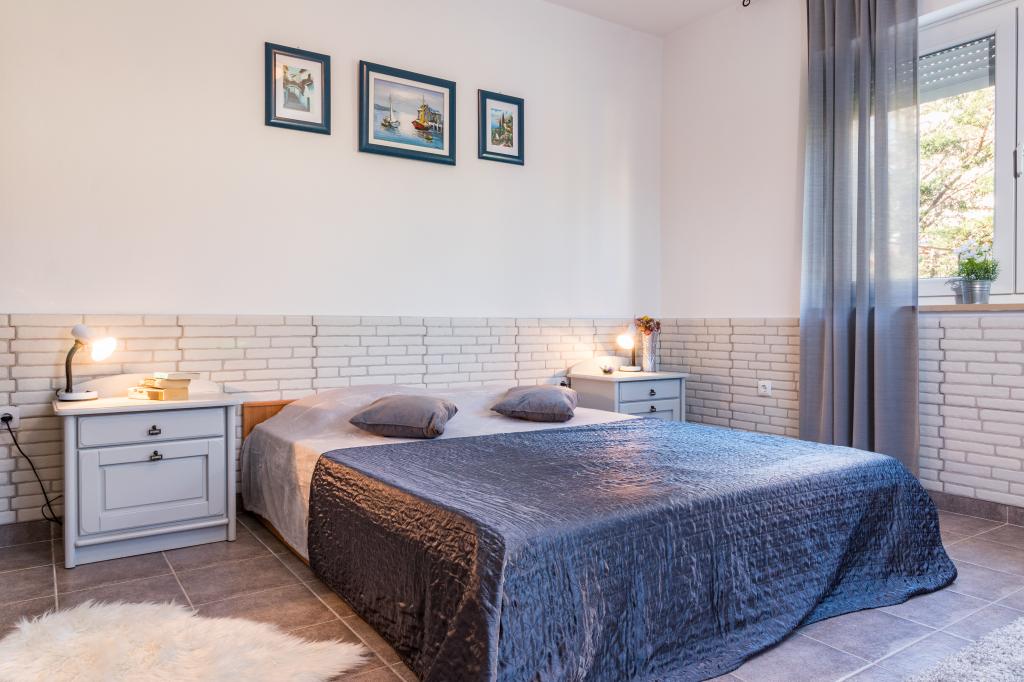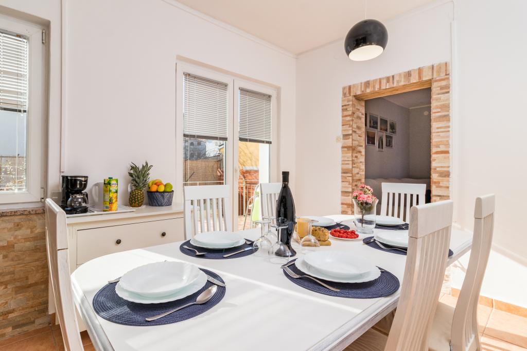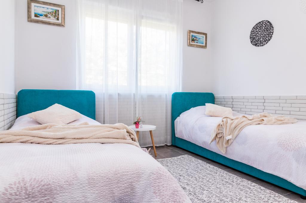Nyaralók Pomer, egy kis falu közelében Medulin. A ház zöldövezetben, kerti nagy 600m, két parkolóhelyet, grill, terasz, kerti pihenőhely. Ez 300 m-re a tengertől és 500 méterre a strandtól. A ház egy nagy 143 m2-es, 3 hálószoba, nappali, konyha, étkező és két fürdőszoba. Pomer van egy teniszpálya, játszótér labdarúgás, kézilabda, kosárlabda, park gyermekeknek, szörf központ, búvárközpont, fitness park. A hely található a tenger mellett, fenyőfákkal körülvéve. Az utószezonban kínáljuk a lehetőséget, hogy bérleti díj csak egy része a ház, mint egy stúdió apartman két fő részére, és állítsa be az árat.