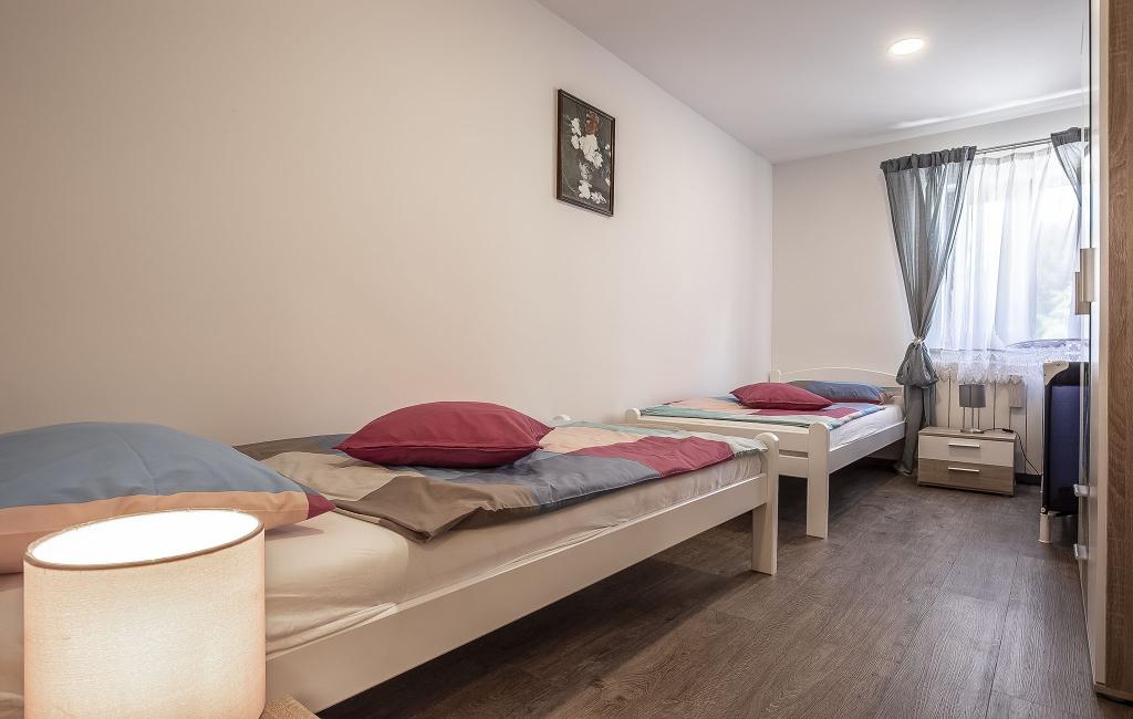 Az apartman Poreč legszebb pontján található - gyönyörű strandok és a városközpont közelében. Az apartmanok egy csendes utcában helyezkednek el, és őrzött parkolóval rendelkeznek. 3 apartman áll rendelkezésre: B4 1 - 4-5 fő kapacitása A2 - kapacitás 2 fő B4 2 - kapacitás 4-6 fő Minden apartman nemrégiben felújításra került, és jól és modern módon berendezett.