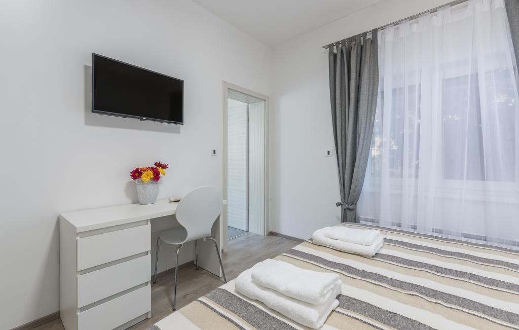 Apartmanjaink egy gyönyörű és csendes lakóövezetben találhatók, tökéletes menekülést kínálva a nyári tömeg elől, mégis mindenhez közel. Egy kellemes 10-15 perces sétával elérhető a gyönyörű Borik strand vagy Poreč nyüzsgő történelmi központja. Egy nagy szupermarket mindössze 4 perces sétára található, ami nagyon kényelmes a családok számára.