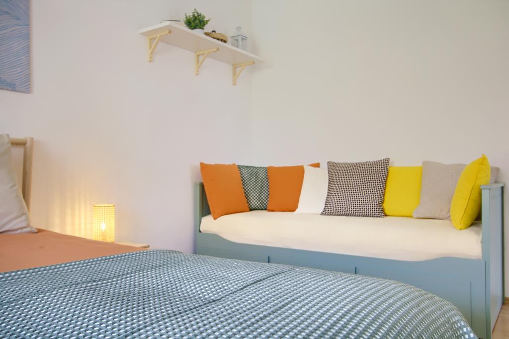 A tengertől első sorban található ez a bájos és világos apartman, amely a kényelem és a mediterrán hangulat tökéletes kombinációját kínálja. Gyönyörű kerti kilátással és nyugodt környezettel ideális családok vagy akár 4 fős csoportok (+1 további vendég) számára. A ház előtt egy kavicsos strand található, amely tökéletes egy reggeli úszáshoz vagy esti kikapcsolódáshoz a hullámok hangjával, míg mindössze 20 perces könnyű sétával elérhető a híres homokos Jaz strand. A helyszín rendkívül praktikus - a közvetlen közelben éttermek, üzletek és minden alapvető szolgáltatás megtalálható, amelyek gyalogosan, autó nélkül is könnyen megközelíthetők. Az apartman teljesen felszerelt a kényelmes és gondtalan tartózkodáshoz, és légkondicionálóval, WiFi internettel, kávéfőzővel, hűtőszekrénnyel, sütővel és egy Smart TV-vel rendelkezik a szobában, így mindent biztosít, amire szüksége lehet a tengerparton töltött nap utáni kikapcsolódáshoz. A tér vidámságot és nyugodt, vibráló hangulatot áraszt, tökéletes egy gondtalan tengerparti nyaraláshoz és a mediterrán életstílus élvezetéhez.
