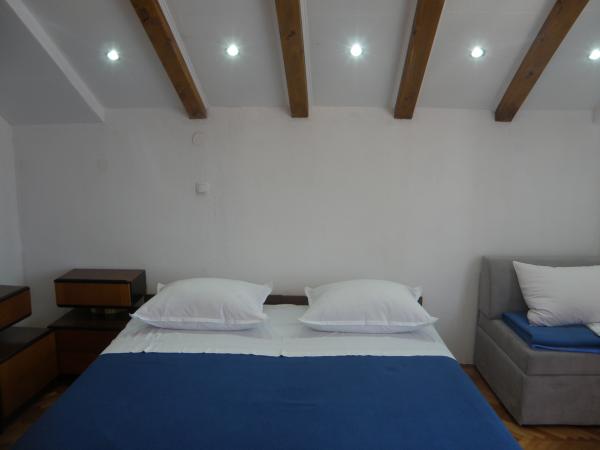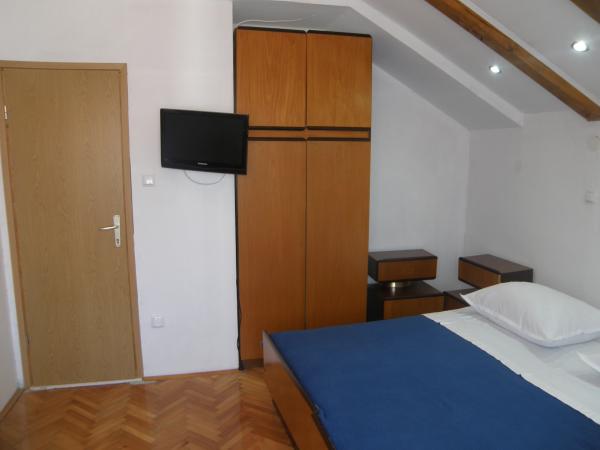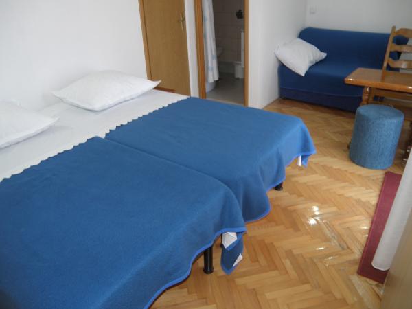 Szép és modern apartman négy vagy öt központjában Primosten parkoló egy autó, néhány percre a strandtól, néhány perc alatt a főtéren, piacok, üzletek. Kényelmes, légkondicionált, akkor ingyenes wi-fi. Két emelet. A tetején két hálószoba és egy kis fürdőszoba. Az egyik szobában van franciaágy és egy kétágyas, két hálószoba vezet egy kis erkély. Az alsó része a konyha, étkező, egy kanapé és egy veranda. Található egy csendes részén, a város, és minden kéznél van - tökéletes egy ideális vakációt. Studio Thomas a Put eperfa 19, egy csendes óvárosban. Kétágyas szoba egy pótággyal gazdagított konyha és fürdőszoba. Fel van szerelve televízióval és légkondicionálóval van a teremben, és kiváló hőszigetelő hűti a szobát egy nagyon rövid idő alatt. A parkolás a hátsó utcákon Nini Gergely püspök, a park mellett.