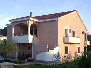 Teljesen felszerelt és modern apartmanok 75m2 minden, egy csendes környéken Privlake. Családi ház szállás apartmanok mindössze 5 perc sétára (200 m), a tengertől, illetve egy 5 perces sétára a városközponttól. Teljesen felszerelt apartman külön bejárattal. Parkoló. A nagy és szépen berendezett kert, amely kap sok figyelmet és szeretetet, hiszen minden részlet nagyon fontos. 14 napig, a tulajdonosok, hogy egy ingyenes vacsorát együtt.