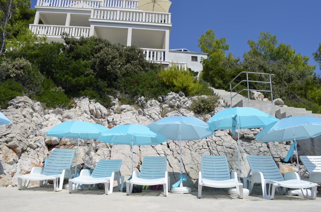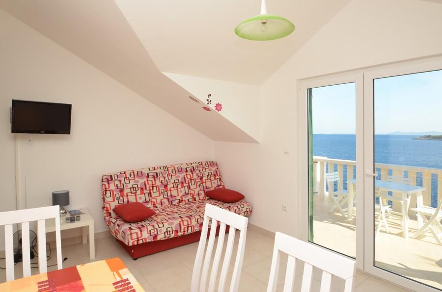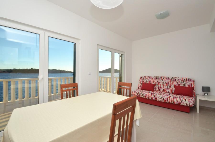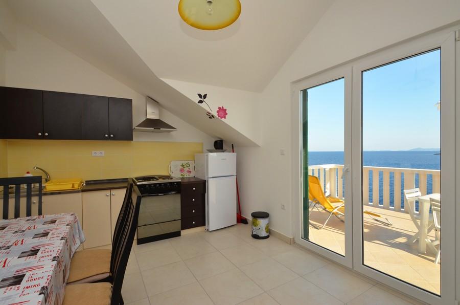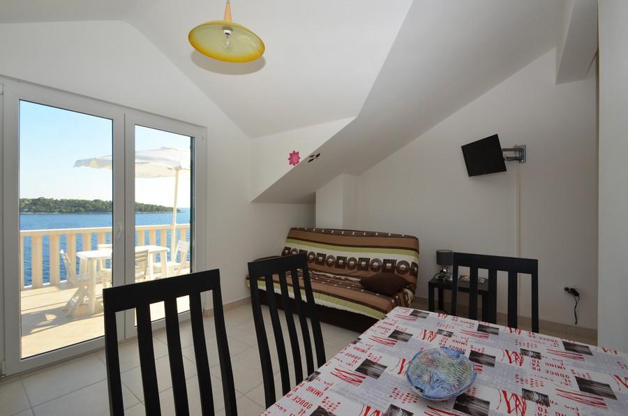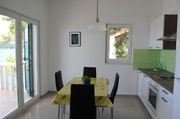 A ház a tenger mellett, csendes helyen található. Az apartmanok új és jól felszereltek. A ház előtt egy nagy parkoló, ingyenes és hangulatos minden vendégünk számára. Minden apartman saját terasszal rendelkezik, kilátással a tengerre és a szigetekre. A közelben két privát strand, ingyenes napernyők és napozóágyak találhatók, búváriskola, vitorlásiskola, hajókölcsönző, moped, kenu, különböző éttermek, gyönyörű túrázási és kerékpáros útvonalak.