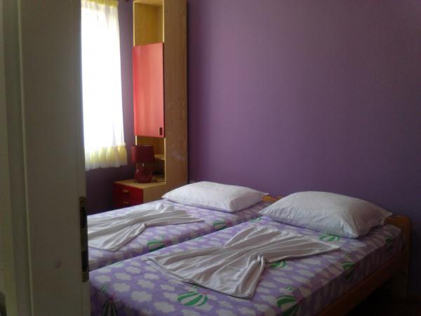 Újabb ház, 3 apartmannal Sasha állt az út végén, a lakossági és turisztikai terület Brijuni. Bolt, étterem, homokos strand kb 400 m, a központtól 1 km, Pula 4 km. Bekerített, 500 nm-es földterület, mediterrán növények, kiwi gyümölcs fákkal, virágokkal és bokrokkal. Ha meg szeretné osztani a kertben: 2 nyugágy, terasz, fa asztal / fa padok, grill. Parkolás az utcán a ház közelében. Erkély (kb 17 nm), bútorok és tengerre néző kilátással. Padló. Műholdas TV. Olaj központi fűtés. Mosógép a tulajdonos (kifizetés). Megjegyzés: A tulajdonos él a földön. Helyi szolgáltatási díjak: Idegenforgalmi adó. Mosás ágynemű (7 naponta cserélik bezárólag) .Kínálunk egy kis törülköző esett személyes. Hozd ovelike törölköző. Kaució: 150 € gyerekágy 20 € szoba (igény szerint). Háziállatok nem engedélyezettek.