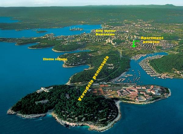 Üdvözöljük a kényelmes lakás egy új! Nem található egy exkluzív helyen Pula - közel a turisztikai település Verudela. Helye a lakás nagyon csendes, nincs zaj - ideális a pihenésre. Szállás áll egy hálószoba két (2) ágyak is csatlakozott egy franciaágy, egy nappali kanapéval (két ágy normál méretű 200x90), felszerelt konyha, étkező, fürdőszoba, nagy terasz / balkon kerti bútorokkal felszerelt. Előtte a terasz egy tágas kert, olajfákkal és a barbecue. A közvetlen közelében (<300 m) található: önkiszolgáló, buszmegálló, étterem, vitorláskikötő, tenisz központ, templom, gyógyszertár, valamint számos turisztikai létesítmények a faluban Verudela. Központja Pula amfiteátrum is megközelíthető gyalog vagy busszal (7 perc). Az autó 10 percig a parkban Kamenjak gyönyörű kristálytiszta víz és a strandok. Napos kirándulás akkor látogasson el a Brijuni Nemzeti Park, vagy Velencében. Hisszük, hogy lesz eltölteni egy kellemes odnor velünk.