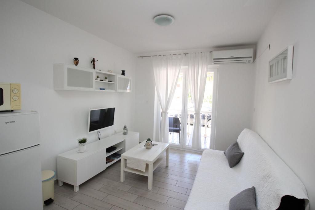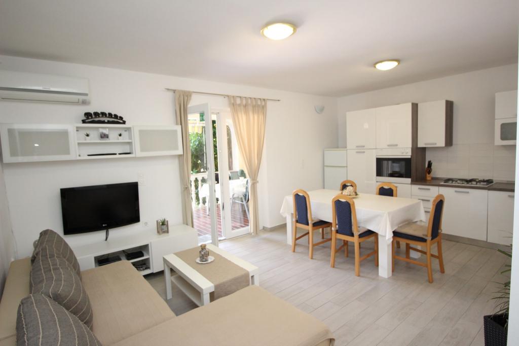 Az újonnan felújított apartman található, egy csendes utcában, 400 méterre a tengertől. Teljesen felszerelt (légkondicionáló, Wi-Fi, műholdas TV). Őrzött parkoló lakás 1 gépkocsi.