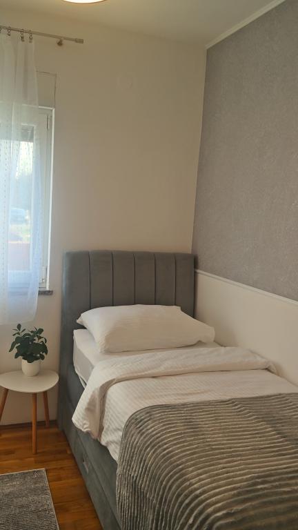 Kiadó egy kényelmes apartman maximum 4 fő részére Čavle városában, Fiume közelében. Az apartman mindössze 6 km-re található Fiume központjától. Az első emeleten (utca felőli oldalon) található a 75 m² alapterületű apartman 3 hálószobával: • 1 hálószoba franciaággyal (160x200 cm) • 2 hálószoba egyszemélyes ággyal (mindegyik 90x200 cm) A teljesen felszerelt konyhában minden szükséges edény, mosogatógép, sütő, elektromos tűzhely 4 égős asztallal, valamint egy szék található. A fürdőszoba mosógéppel, WC-vel és káddal felszerelt. A nappali kényelmes teret kínál síkképernyős, műholdas TV-vel. A nappali egy 10 m²-es teraszra nyílik, amely ideális a pihenéshez vagy a reggeli kávé elfogyasztásához. Az apartman vezeték nélküli internet-hozzáféréssel és légkondicionálóval rendelkezik a nappaliban. A ház előtt 1-2 autónak van parkolóhely. Rijeka legközelebbi strandja (Plaža Pećine) mindössze 8 km-re található. Čavli központja mindössze 300 méterre található az apartmantól.