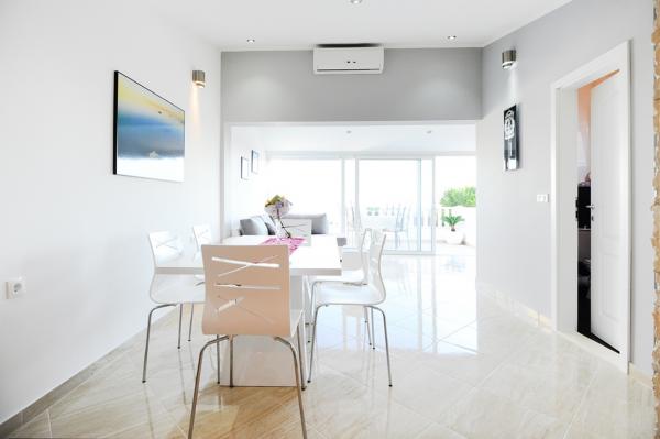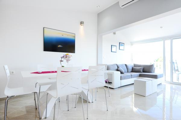 Két új apartman egy csendes részén Rogoznica, kínál mindent, amire szükség van a teljes pihenésre és a kikapcsolódásra, a béke, a távolság a város zajától, saját helyét a strand napernyőkkel és nyugágyakkal, a képesség, hogy bérelni egy hajót, hogy vizsgálja meg, és bejárjuk a környező szigetekre. Kilátás a teraszról egészen a világítótorony Mulo és a környező szigetekre .. A közelben van a központja Rogoznica, mindössze 7 percre, akkor lehetősége van arra, hogy látogassa meg a város Primosten. Bízunk benne, hogy látni!