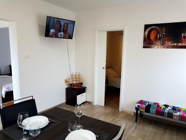 Apartmanok Kanica pihenni található egy ház áll, hogy a földszinten és az emeleten. Aprtman A1 található, a földszinten terasz és apartman A2 található az első emeleten hosszú erkély. Az apartmanok találhatók Kanica, egy kis hely, a kristálytiszta víz és a kis sziklás strandok. Kanica egy kis hely idalno élvezni a nyár varázsát nap és a tenger. Kanica vendégek keres valami aktív pihenés várja a búvárkodás, horgászat, vízisí az öbölben lehet bérelni vizibicikli és kajak és hajókirándulás. Ez a hely re Trogir 25 km, és félúton található Split és Sibenik (50 km).
