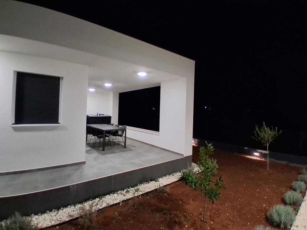 Új, egyszintes ház 70 négyzetméteres lakóterülettel és 30 négyzetméteres fedett terasszal, csendes helyen, az úttól távol, olajfaligetre néző kilátással. A tágas terasz védett a szomszédos házaktól, és garantálja a magánéletet. A strand gyalogosan is elérhető, néhány percre az ingatlantól. Három autó számára biztosított privát parkolás. Két légkondicionált hálószobával (1. nagy franciaágy, 2. két egyszemélyes ágy), tágas, légkondicionált nappalival, konyhával és étkezővel, valamint egy nagy fürdőszobával és WC-vel rendelkezik. A ház teljesen új bútorokkal és készülékekkel, okos TV-vel, terasszal és egy nagy asztallal 6 fő részére felszerelt.