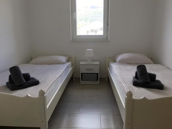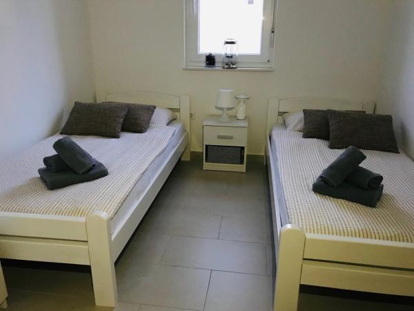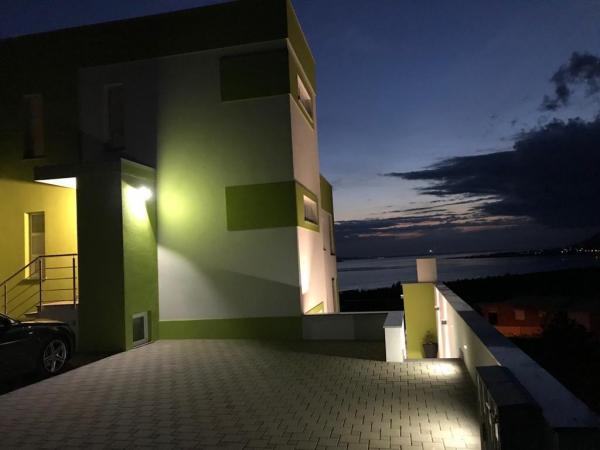 Gyönyörű Rovanjska található az öböl végén a Velebit-csatorna közelében, Zadar. A közelsége Velebit gazdagítja ezt a helyet parkok, barlangok, utak és kerékpáros utak. Modric barlang le lábánál a Velebit és a templom Szent .. George a város szívében a régi horvát egyházi építészet. A közelben található a Paklenica Nemzeti Park 8 km, a Plitvicei-tavak Nemzeti Park mintegy 95 km, és a Krka Nemzeti Park a távolság körülbelül 85 km. Az apartmanok 200 méterre a buszmegállótól, 400 méterre a strandtól, 30 km-re a repülőtértől és a komp kikötő Zadar. A teraszról gyönyörű kilátás nyílik a tengerre és különösen a gyönyörű naplemente. Az apartmanok modern, teljesen felszerelt.