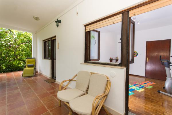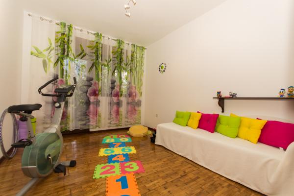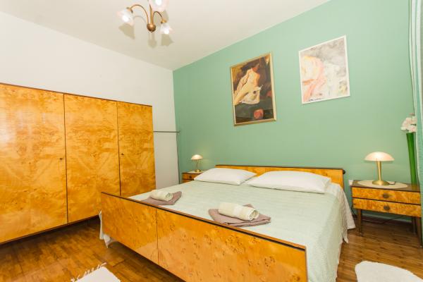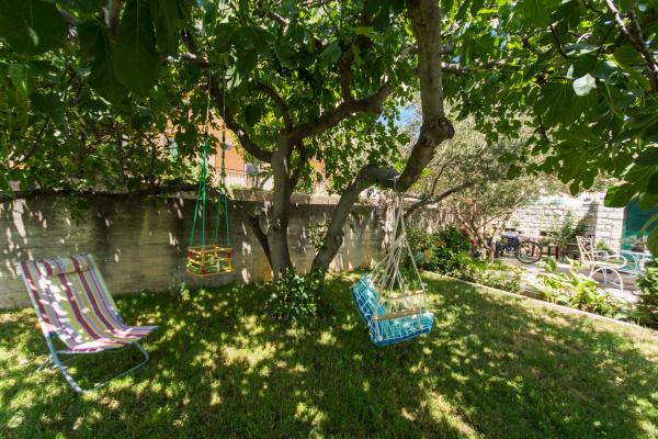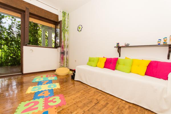 Lakossági adót az az ár tartalmazza.Apartman Lorenzo egy nagy és árnyékos terasszal (34m2), kert (800m2), csempézett udvar (70m2), 3 hálószoba (1. szoba = franciaágy, Trogir szimbólum: Szent János székesegyház, 2. szoba = franciaágy egyágyas szoba, teraszkikötő, 3. szoba = franciaágy, zöldövezet és kert), hosszú Trogir-festményekkel díszített folyosó, fürdőszoba (kád, vadonatúj mosógép, hajszárító, egy teljesen új fürdőszoba (bidé, mosdó, WC-tál), további rekreációs terem (otthoni kerékpár, gyermekfelszerelések, íróasztal), tágas nappali (műholdas televízió, vonal, légkondicionálás ...) mosogatógéppel, garázzsal és önálló grill-házzal