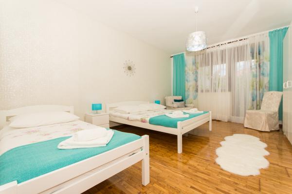 Apartman-Villa Lorenzo egy nagy és luxus apartman (165m2) mindössze 7 perc sétára Trogir központjától. Teljesen felszerelt és a közelmúltban felújított. A Lorenzo apartmant, magában a szálláson kívül, további 4 kültéri sarkot kínál, zöldövezetben és természetben, szabadtéri, önálló grillházzal, 3 saját parkolóval és 2 kerékpárral, amelyek teljesen ingyenesek. A tengertől 100 méterre van a lakás és a legközelebbi strand 0,5 km-re van a lakásban. A lakás közelében Lorenzo van a marina Baotic, és a lakás található, egy csendes és biztonságos helyen, körülvett családi házak.