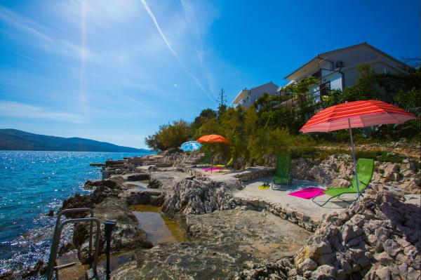 A Brugi otthon érezheti magát. A légkör és a felszerelés elegendő a pihenéshez és a pihenéshez. Minden egyszerű, ügyes és újonnan felszerelt. A Brugi A6 apartman ideális négyszemélyes család számára, mivel két kétágyas szobája és hat vendég zavartalanul marad, mivel a nappaliban található a kanapé, amely kapcsolódik a teraszhoz, ahol kerti asztal székekkel és grillezővel van a társasági élet és a pihenés érdekében. A teraszon napozóágyakat helyeztek el, így nyílt kilátás nyílik a tengerre és a szigetekre, valamint a napkeltekre és a naplementére. Van egy garázs, amelyet egy autó számára terveztek. Az A3 apartman kétágyas hálószobával és egy kanapéval rendelkezik a nappaliban, amelyhez a konyha kapcsolódik. 3 fő elszállásolására is lehetőséget kínál. A grill a ház alsó részében található. A vendégeknek lehetősége van parkolni autóikat az udvaron. Teljes egészében bérelhető. Ha nagy családdal vagy társasággal rendelkezik, mindkét apartman bérlésének lehetősége. Mindent együtt, a legjobb !!