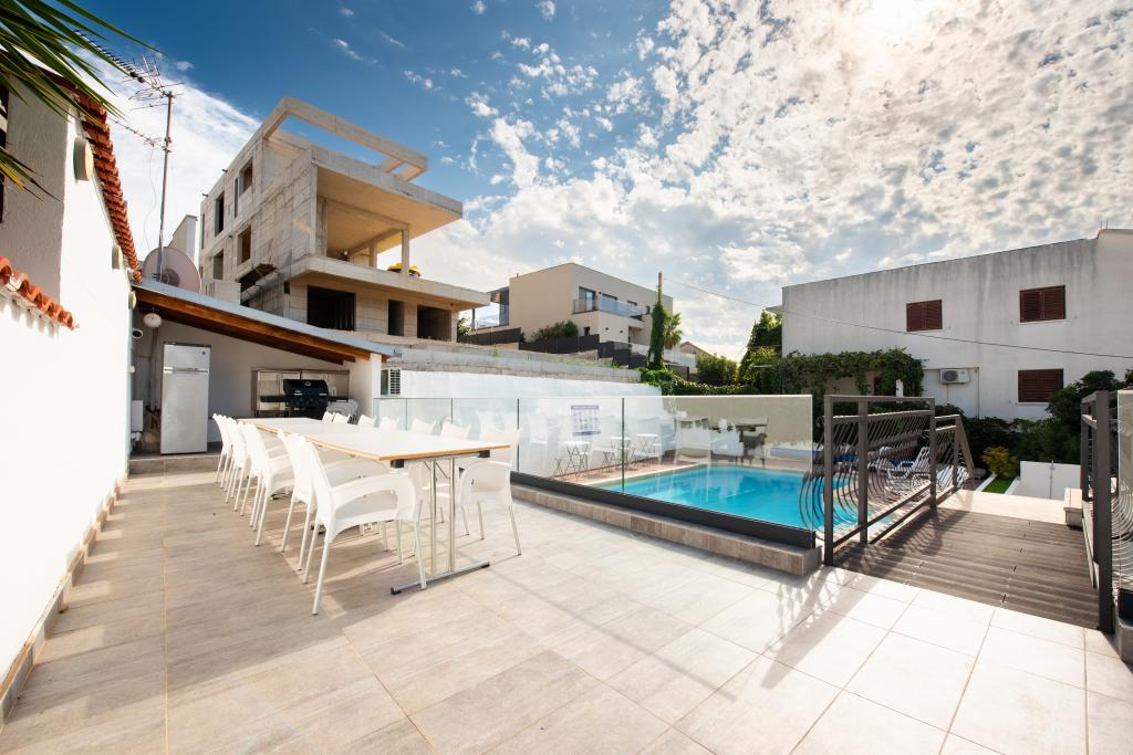 A Villa A'Mare szezonális szabadtéri medencével, kerttel és grillezési lehetőséggel ellátott közös terasszal várja vendégeit. Az apartman ingyenes wifivel és saját parkolóval rendelkezik. A légkondicionált szálláson teljesen felszerelt, étkezős konyha, síkképernyős TV, valamint zuhanyzóval és hajszárítóval ellátott, saját fürdőszoba áll rendelkezésre. Mikrohullámú sütő, hűtőszekrény, sütő és vízforraló is rendelkezésre áll. A Villa A'Mare vendégei használhatják a pezsgőfürdőt. A szálláshely grillezővel és napozóterasszal várja vendégeit, 50 méterre a kavicsos strandtól. A legközelebbi repülőtér Split 10 km-re lévő repülőtere.
