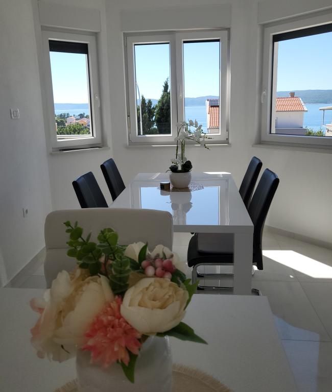Új apartmanok Selce központjában, egy kis és festői városban az Adriai-tenger partján, Crikvenicához nagyon közel - a ház magas földszintjén és első emeletén helyezkednek el, tágasak és szellősek. Mindkét apartman két hálószobából, fürdőszobából, előszobából, "nyitott terű" konyhából, étkezőből és nappaliból, valamint erkélyből áll. Gyönyörű kilátás nyílik a tengerre és a strandra. Az apartmanok 2 perc sétára találhatók a városközponttól, üzletektől, sétánytól, strandtól, éttermektől és kávézóktól. A parkolás a ház udvarában lehetséges. A légkondicionáló, a wi-fi és a parkolás benne van a szállás árában. Az ár tartalmazza az idegenforgalmi (tartózkodási) adót és az apartman takarítását. HÁZIÁLLATOK NEM ENGEDÉLYEZETTEK.