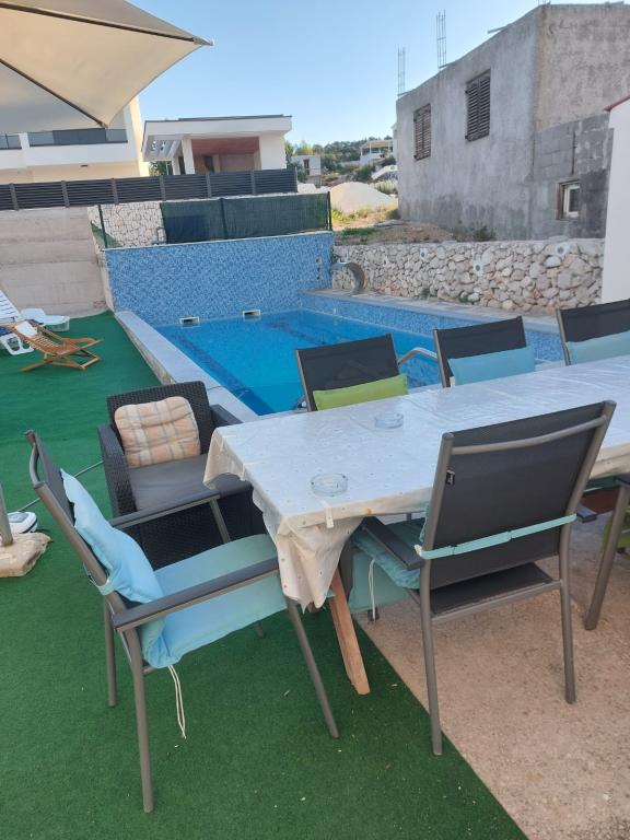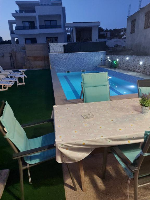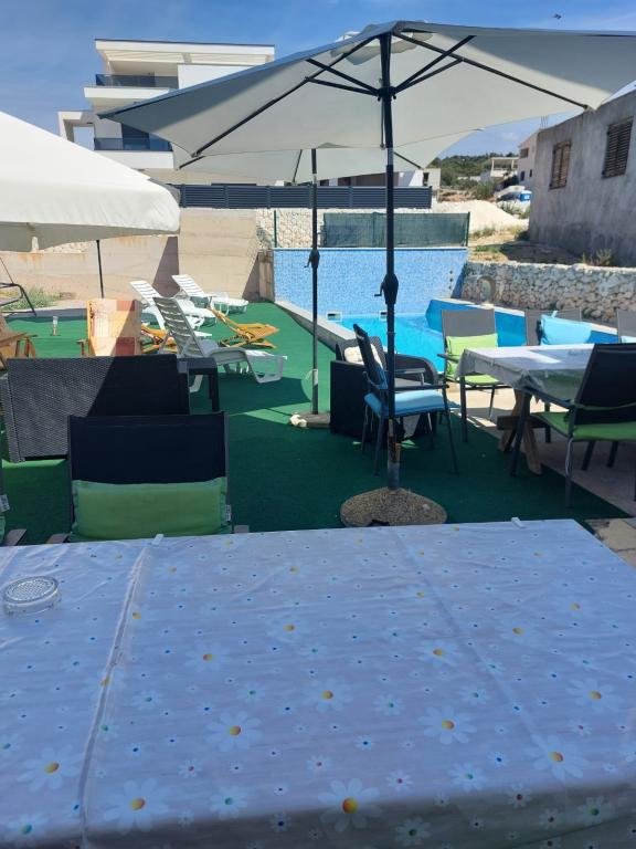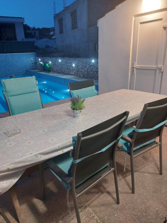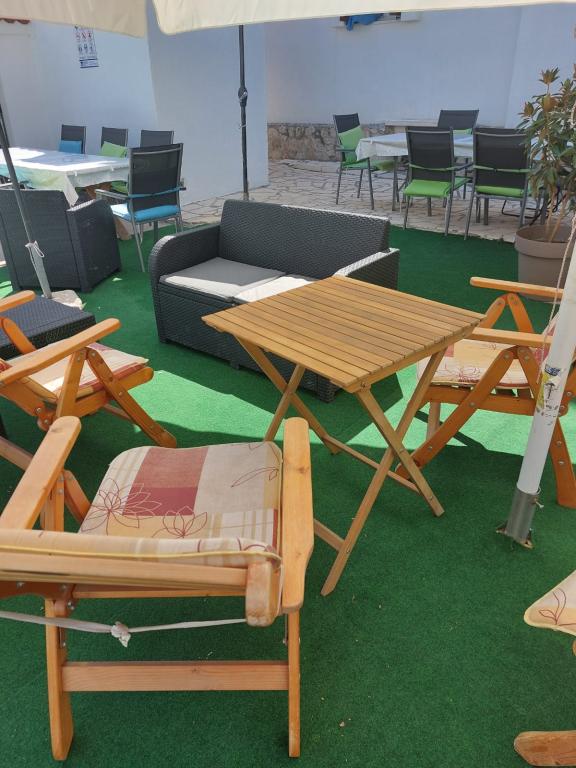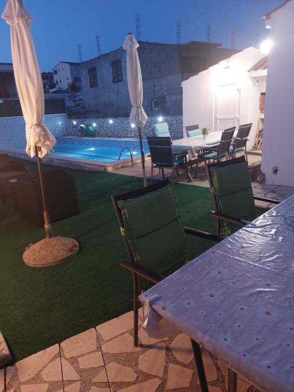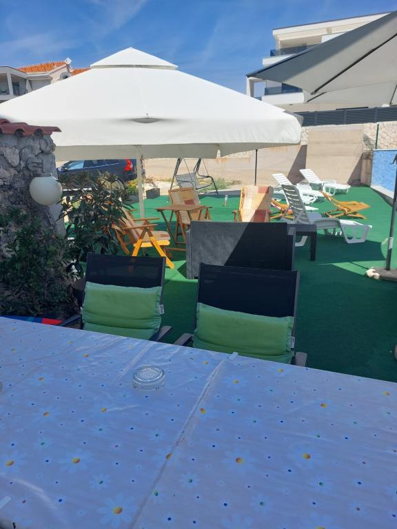 Csendes és csendes környéken. Napozóágyak, napernyők, kajakok a strandon, és mindez az árért. A kertben medence és grillezési lehetőség. Parkolás. A4 szoba tágas, nagy erkéllyel (ott töltöttük az első hetet), A2 + 2 (második hetes tartózkodás) enyhén kisebb, tiszta szobák. A tulajdonosok kedvesek, barátságosak és segítőkészek. Szép 2 + 2 család (7 és 11 év közötti gyermekek). Az üzlethez és a bárhoz 2 perc. (csak bolt és bár a faluban) A strand maximum 1 perc Víz ezen a helyen nagyon tiszta. Mindenkinek ajánlom a Dinko lakást.
