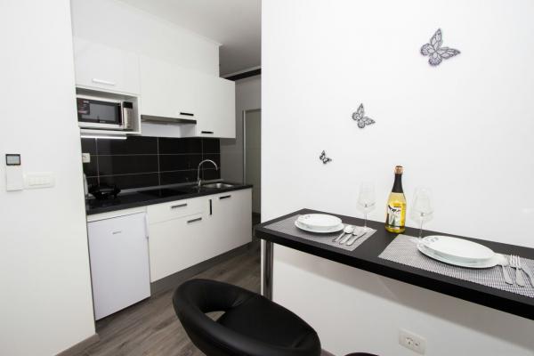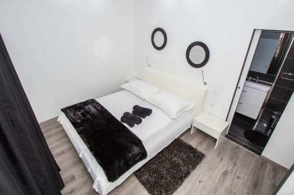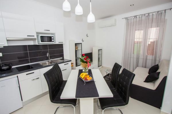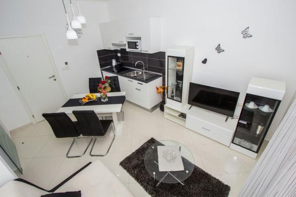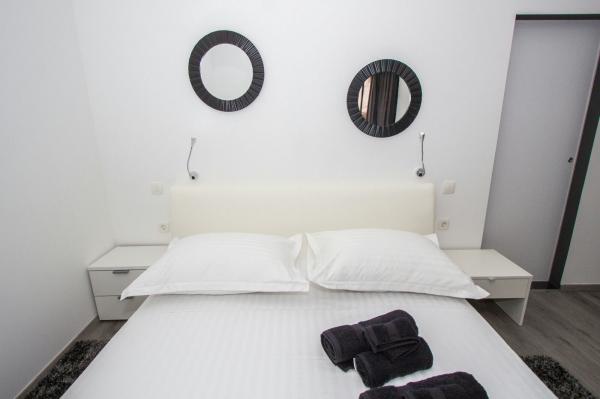 Új, modern berendezésű apartmanok Sibenik, közel a székesegyház Szent Jakab. Áll egy konyha, nappali, hálószoba és fürdőszoba. Az apartmanok közvetlen közelében üzletek, éttermek, bankok, posta. Banj strand 500 méterre. Nyilvános parkolási lehetőség a közelben, és nem kell foglalni.